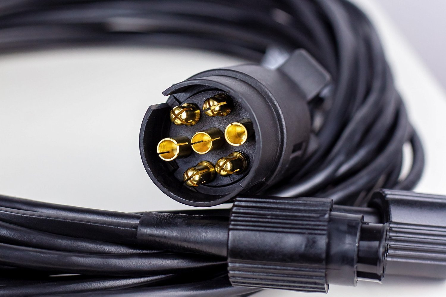 Le faisceau est équipé de deux connecteurs à baïonnette 5 broches pour le raccordement des feux arrière. Ce système assure une installation rapide et sûre, éliminant ainsi tout risque de déconnexion accidentelle pendant la conduite. La conception du connecteur garantit une connexion étanche et protège les contacts de la corrosion, garantissant ainsi un fonctionnement durable et sans problème de l'ensemble du système d'éclairage de la remorque.