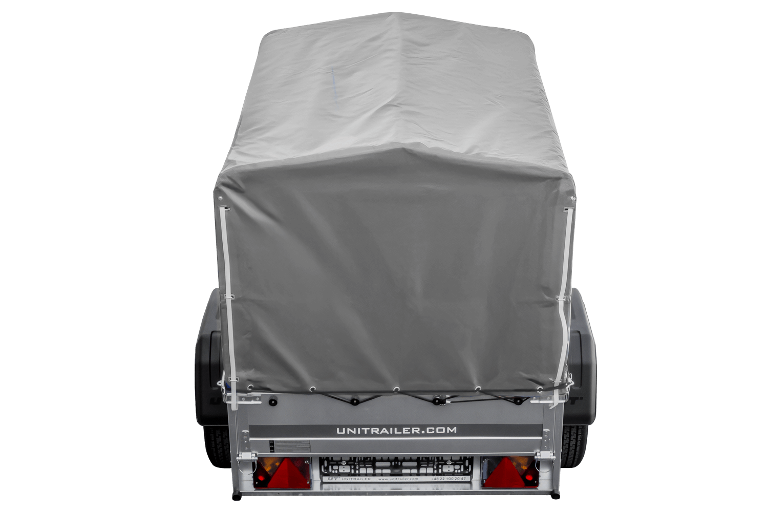 Remorque bachée avec arceau, caisse basculante de la marque UNITRAILER, modèle GARDEN TRAILER 150 KIPP. C'est une remorque petite, idéale pour usage quotidien. La bâche avec armature la rendent très pratique pour le transport des marchandises, qui peuvent être facilement chargés grâce au timon pliable et ridelle arrière ouvrante. Une remorque très solide anti-corrosion, en acier galvanisé. Elle est idéale pour votre maison car elle peut être placée sur la ridelle arrière, ce qui permet de son stockage vertical dans votre maison ou à côté du garage.