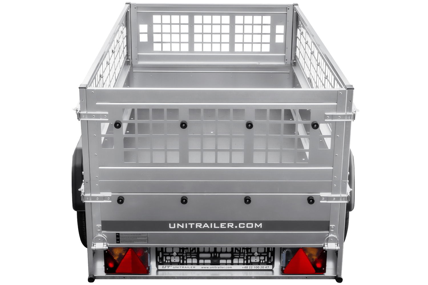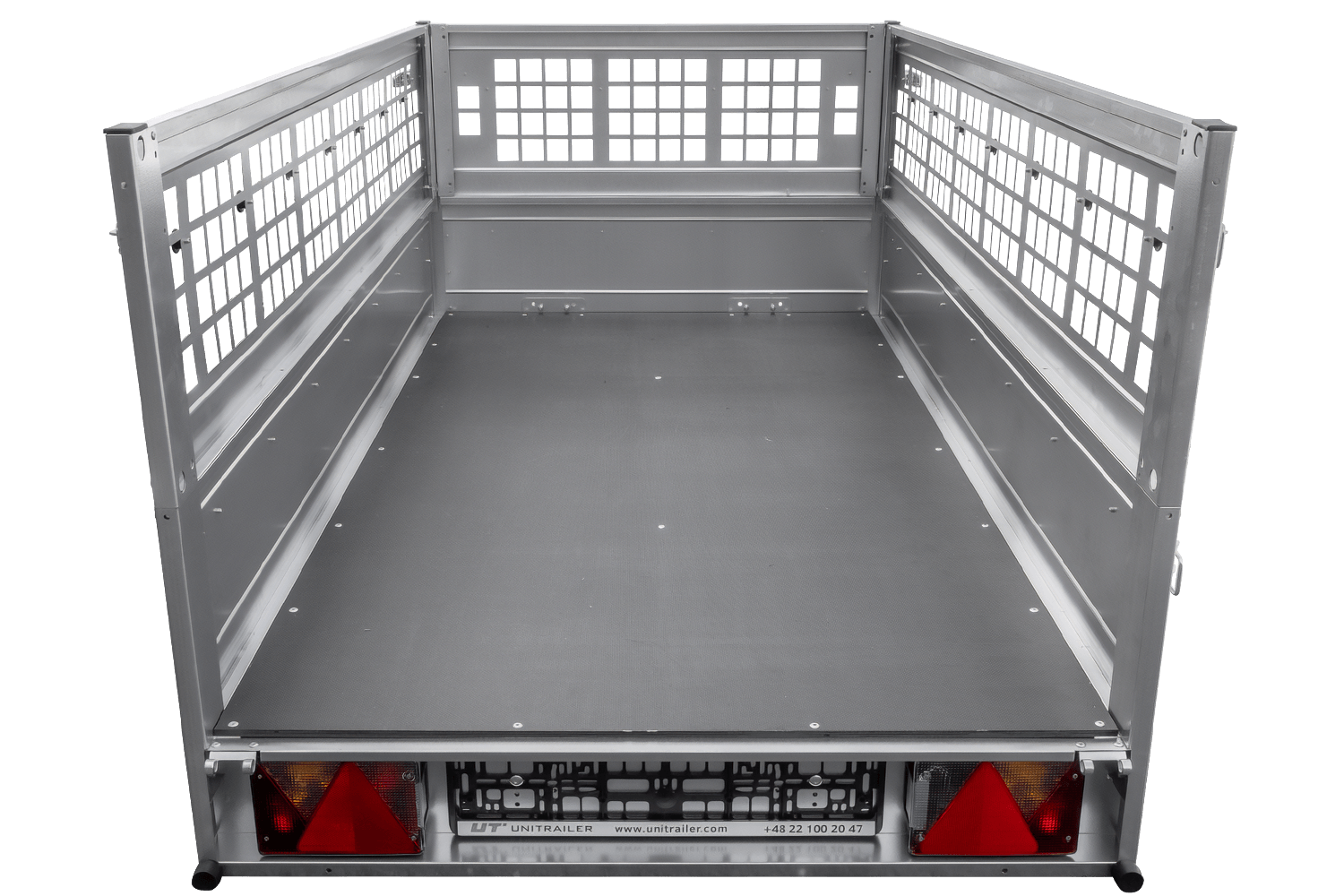 - En utilisant les rehausses de ridelles supplémentaires, vous obtenez jusqu'à 70 cm de hauteur de la surface de transport. Vous pouvez également monter des supports latéraux, dispositifs de fixation sur le plancher, un filet de fixation de charge ou acheter une roue de secours ou des cales de roue. Vous adapterez votre remorque à vos besoins de manière très facile.