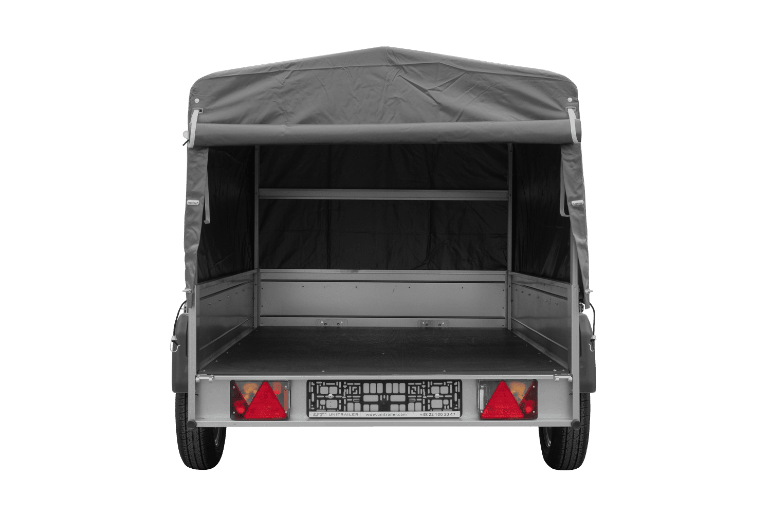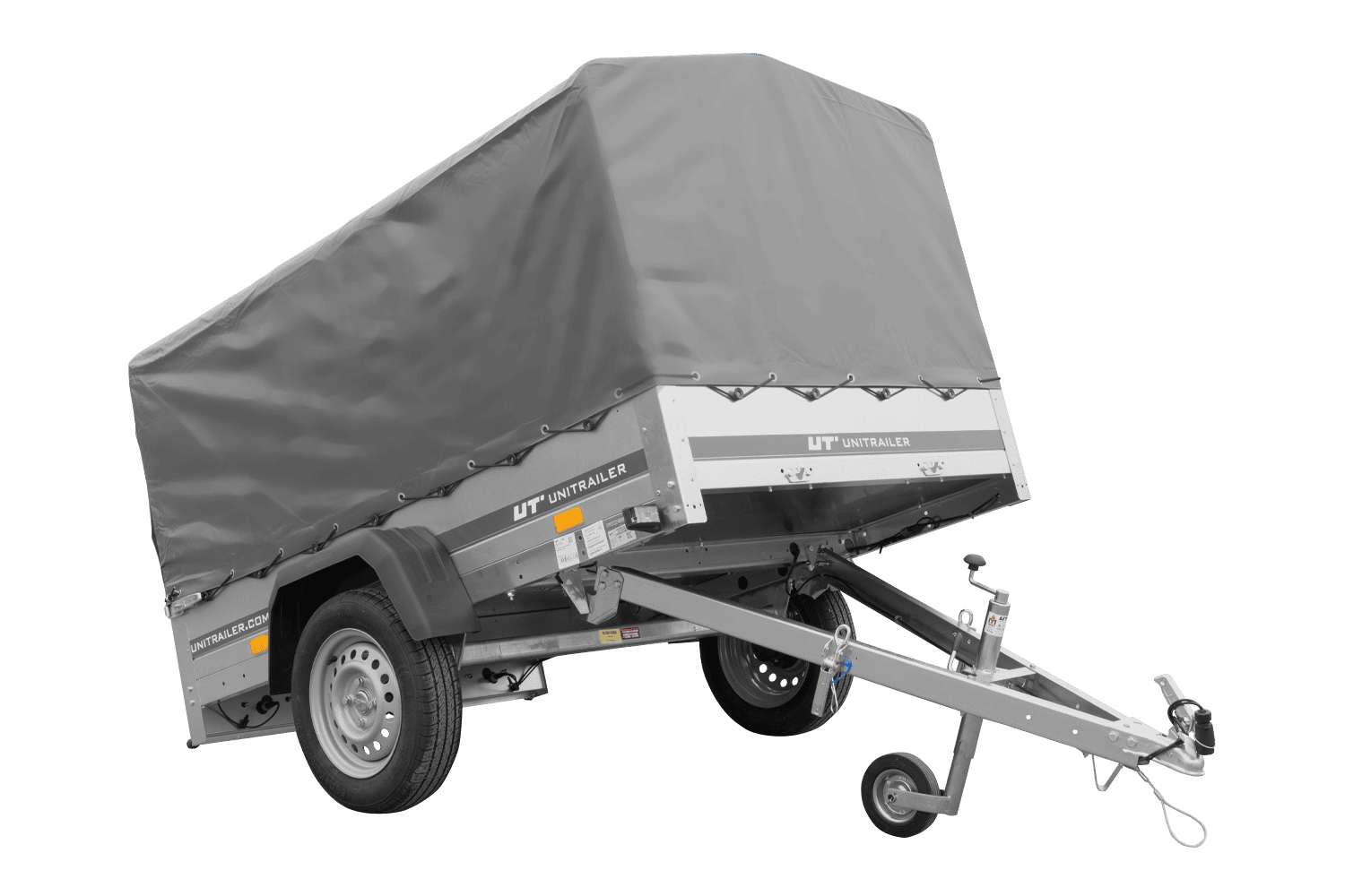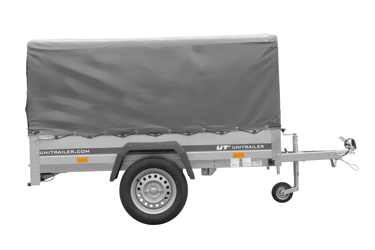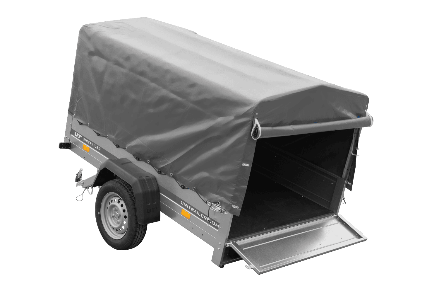 Remorque à un essieu 200x125 UNITRAILER GARDEN 201 KIPP avec châssis H-800 et bâche grise