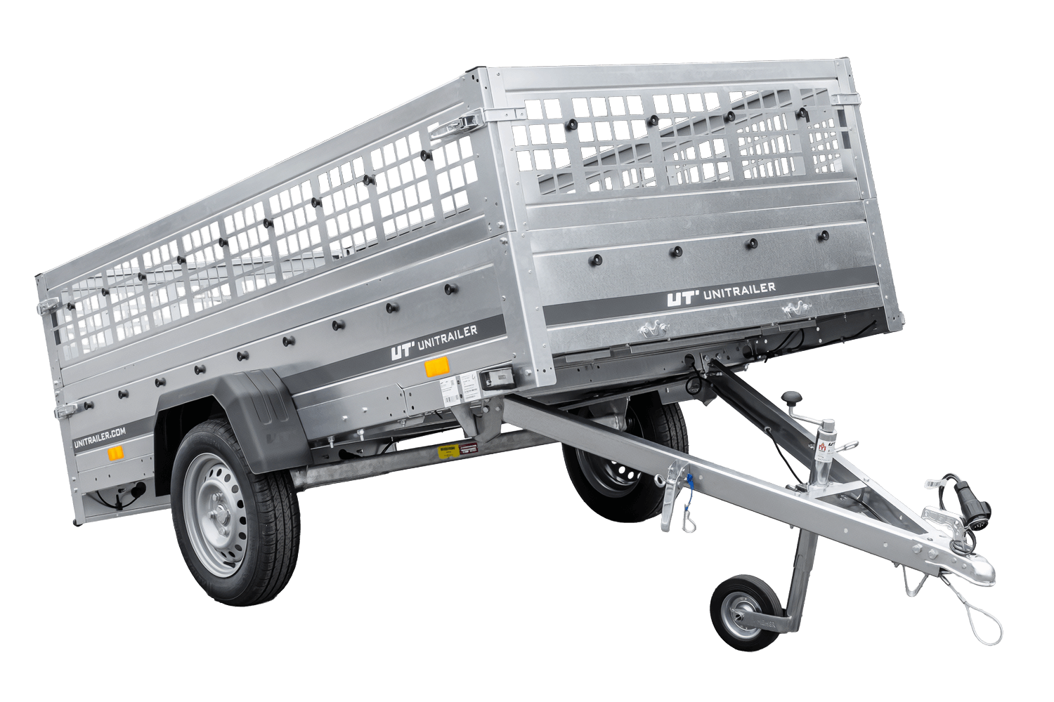 - Remorque basculante à un essieu avec ridelles grillagées et roue jockey de 2,64 m. La remorque est équipée d'un essieu directeur et d'un PTAC allant jusqu'à 750 kg. Commandez en ligne pour une livraison rapide à votre adresse.