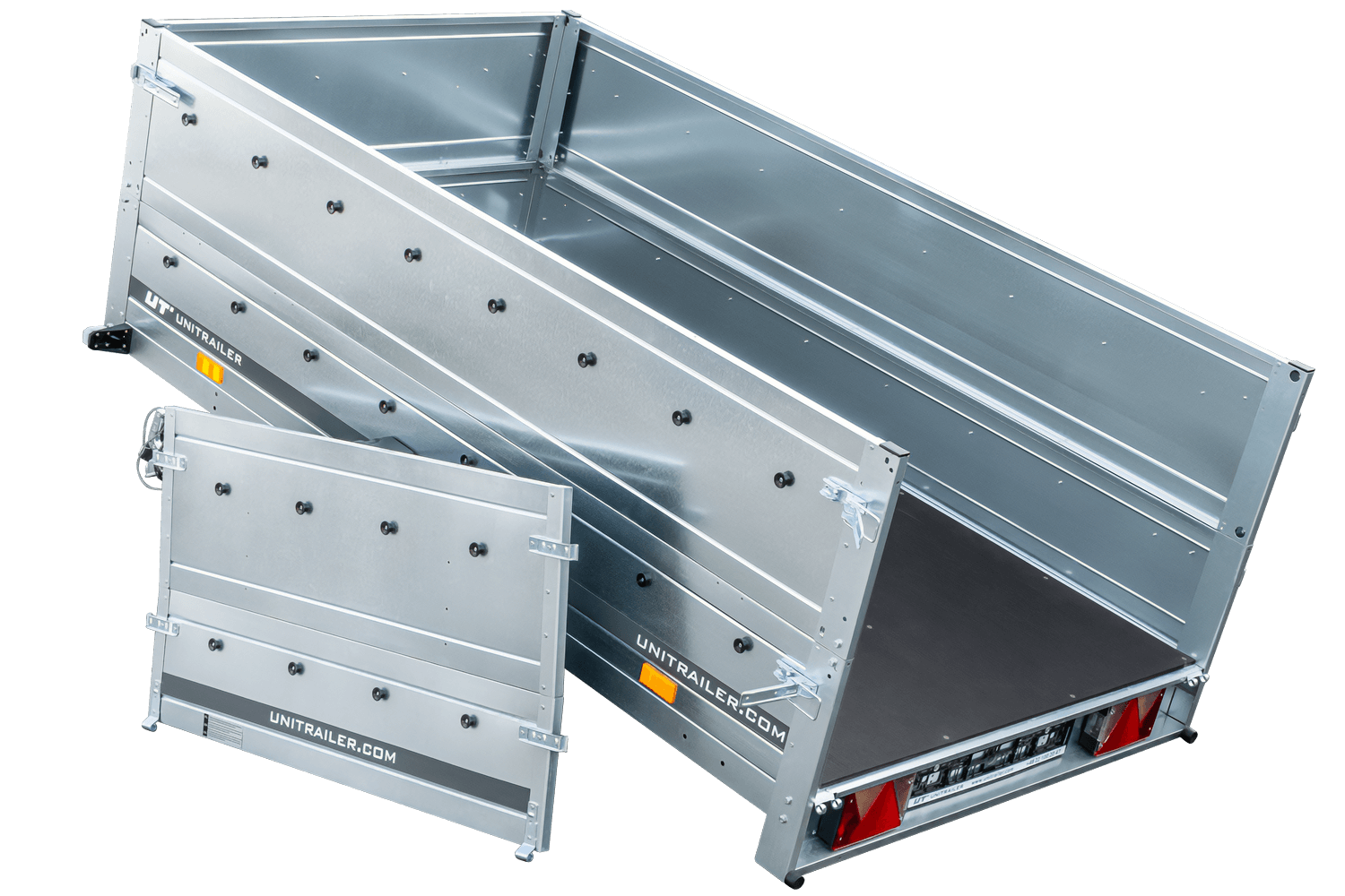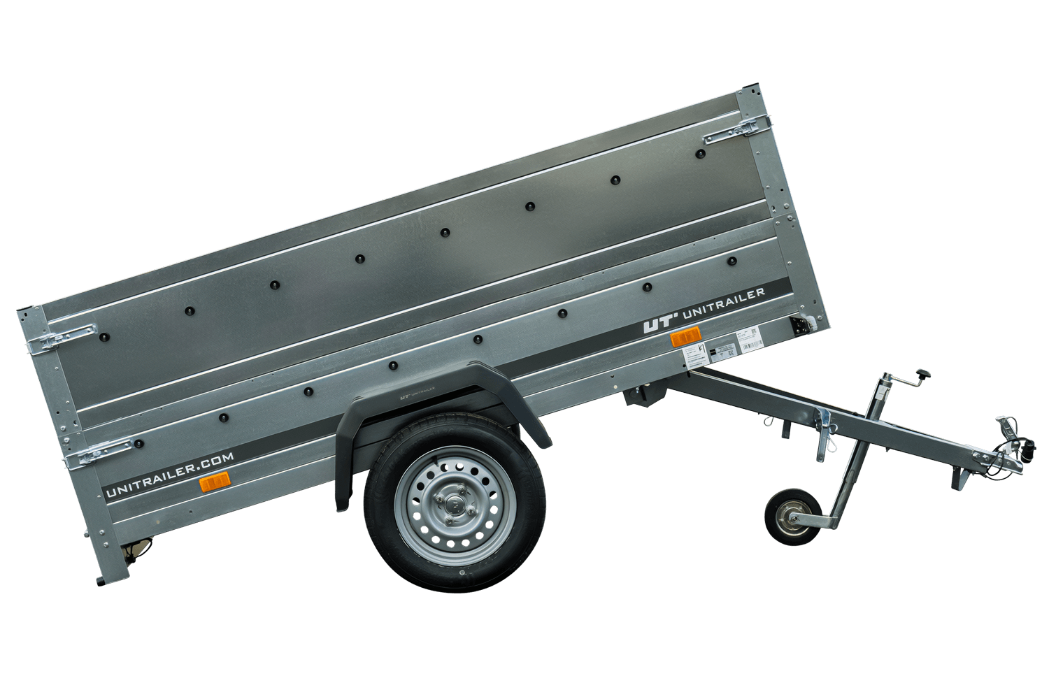 Remorque auto avec rehausses de ridelles UNITRAILER Garden Trailer 230 KIPP est le dernier produit de notre offre. Maintenant, c'est la plus grande remorque dans notre magasin avec PTAC jusqu'à 750 kg. Elle est équipée de la ridelle arrière ouvrable, ce qui rend facile le chargement et le déchargement de la cargaison. Grâce au timon pliable, elle peut être placée verticalement sur le panneau arrière. Nous faisons toutes les formalités liées à l'achat pour vous. La remorque est livrée à votre domicile avec tous les documents nécessaires pour l'immatriculer.