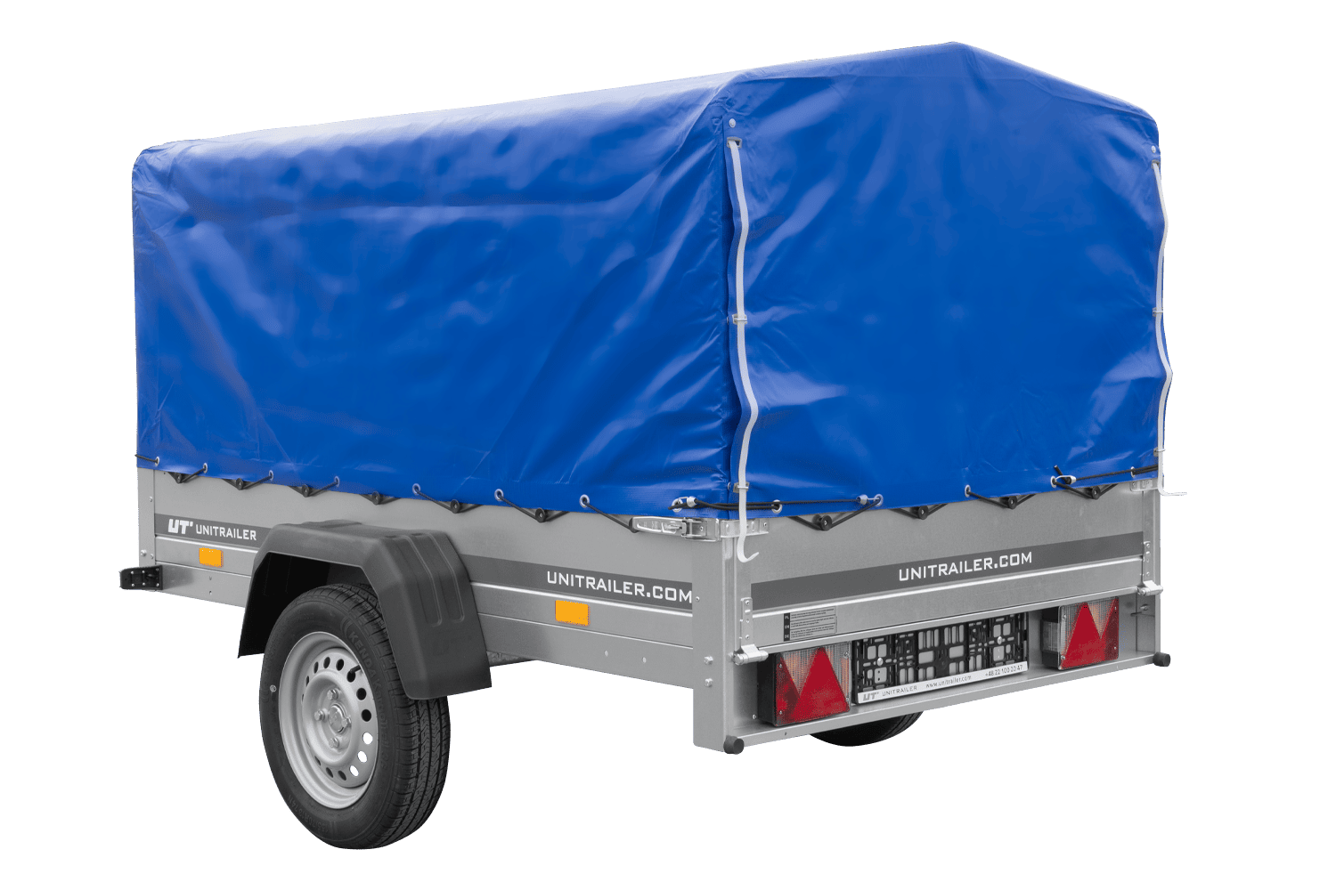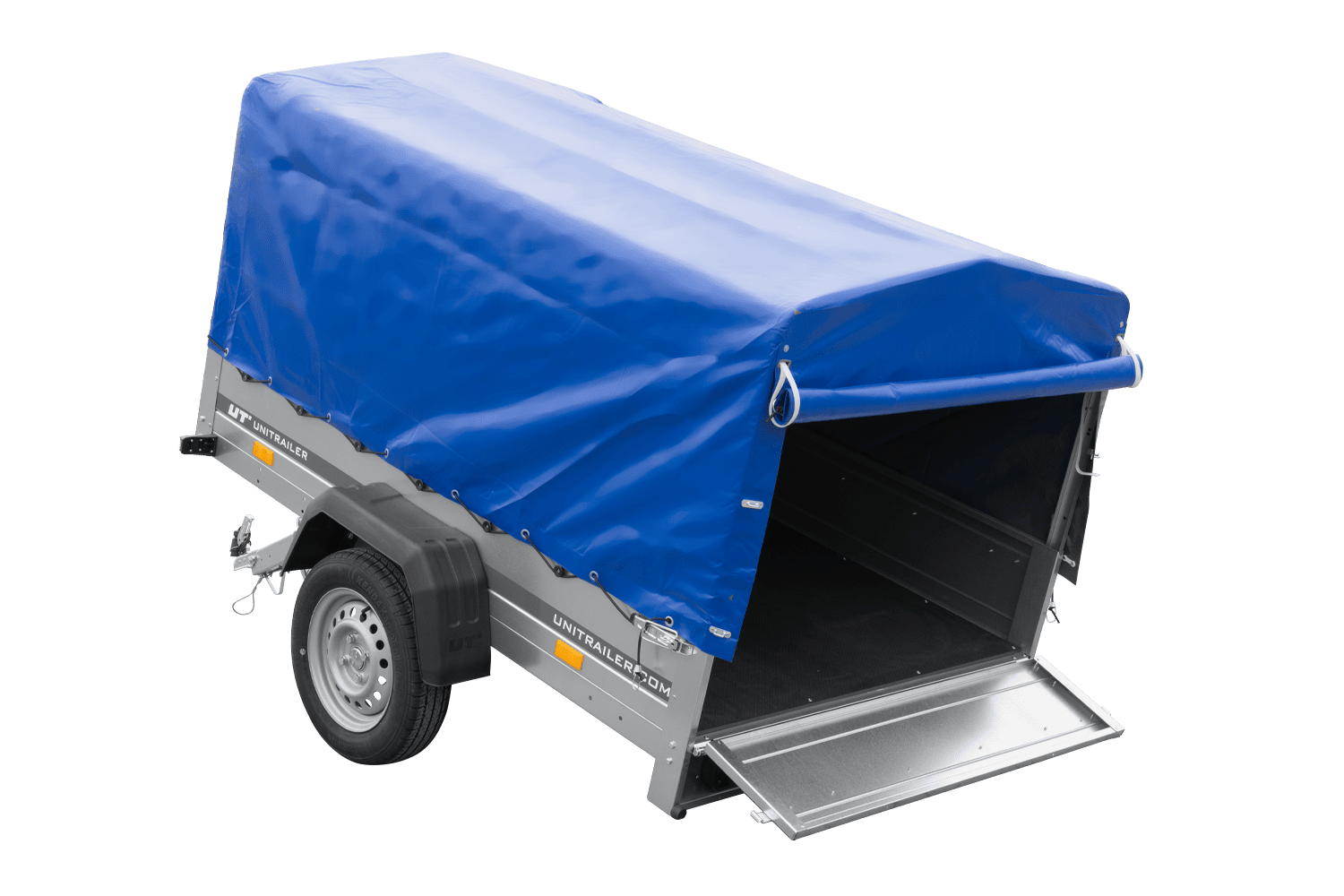 Remorque légère 200x125 UNITRAILER GARDEN 201 KIPP avec châssis H-800 et bâche bleue