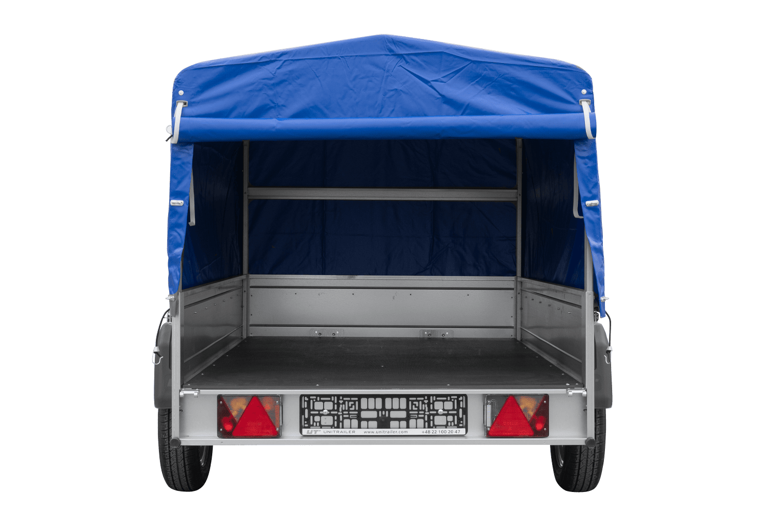 Remorque légère avec bâche de jardin fabriquée par la société polonaise UNITRAILER . Les remorques de la série Garden Trailer sont équipées d'un timon inclinable et d'une fonction de basculement. Le timon inclinable facilite le rangement de la remorque dans un garage, en position verticale à l'arrière , tandis que la fonction de basculement permet un déchargement rapide. Cette caractéristique est particulièrement utile pour le transport de matériaux en vrac tels que le gravier, le sable ou les gravats. Le timon en forme de V est plus robuste et améliore la stabilité de la remorque. La remorque légère est livrée avec une bâche bleue montée sur une armature solide, offrant un support résistant à la bâche. Cette dernière est fabriquée dans un matériau indéchirable pour une durabilité optimale. L'ensemble de la série Garden Trailer 201 KIPP est entièrement galvanisé , ce qui la rend résistante à la corrosion . Ce produit est conçu pour durer de nombreuses années. De plus, la remorque est équipée d'une roue jockey pour un attelage facile au véhicule. La suspension de la remorque de jardin est composée d'un essieu simple à deux roues, provenant des fabricants allemands réputés AL-KO ou KNOTT . Le poids total autorisé en charge (PTAC) de la remorque est de 750 kg , et son poids total autorisé en charge (PTAC) est de 122,7 kg . Par conséquent, la charge utile maximale de la remorque est de 627,3 kg .