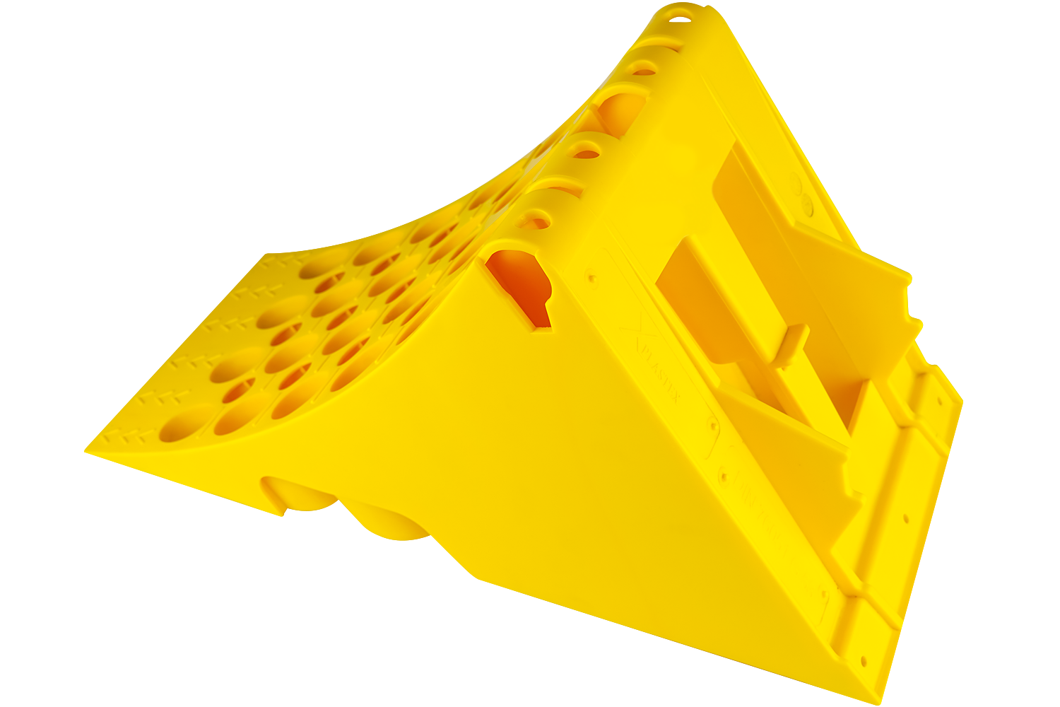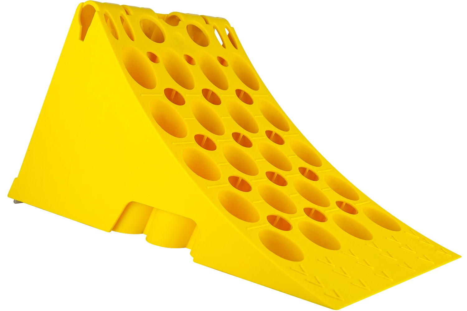 - La cale de roue PLASTEX, d'une hauteur de 224 mm, est conçue pour les camions, remorques et autres véhicules utilitaires lourds. Elle bloque efficacement les roues, empêchant le véhicule de bouger et augmentant la sécurité en stationnement.