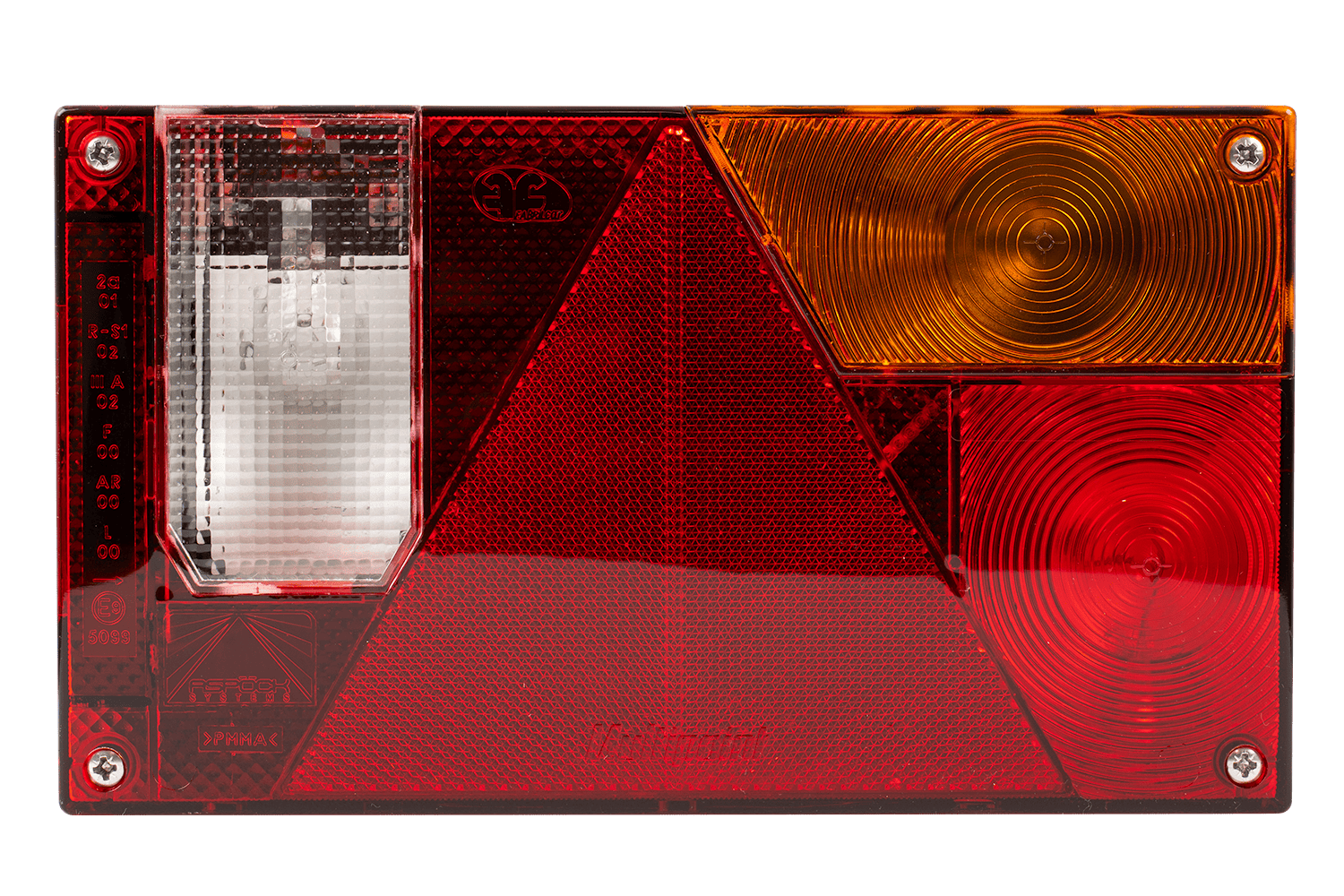triangle réfléchissantLe feu a six fonctions: feu de position, qui assure la visibilité du véhicule lors de la conduite de nuit ; feu stop, signalant le freinage ; un clignotant, permettant d'indiquer l'intention de tourner ; le feu de recul, qui facilite les manœuvres en marche arrière en améliorant la visibilité derrière le véhicule ; éclairage de la plaque d'immatriculation, qui garantit que le numéro d'immatriculation du véhicule est visible la nuit ; et un triangle réfléchissant qui augmente la visibilité du véhicule.