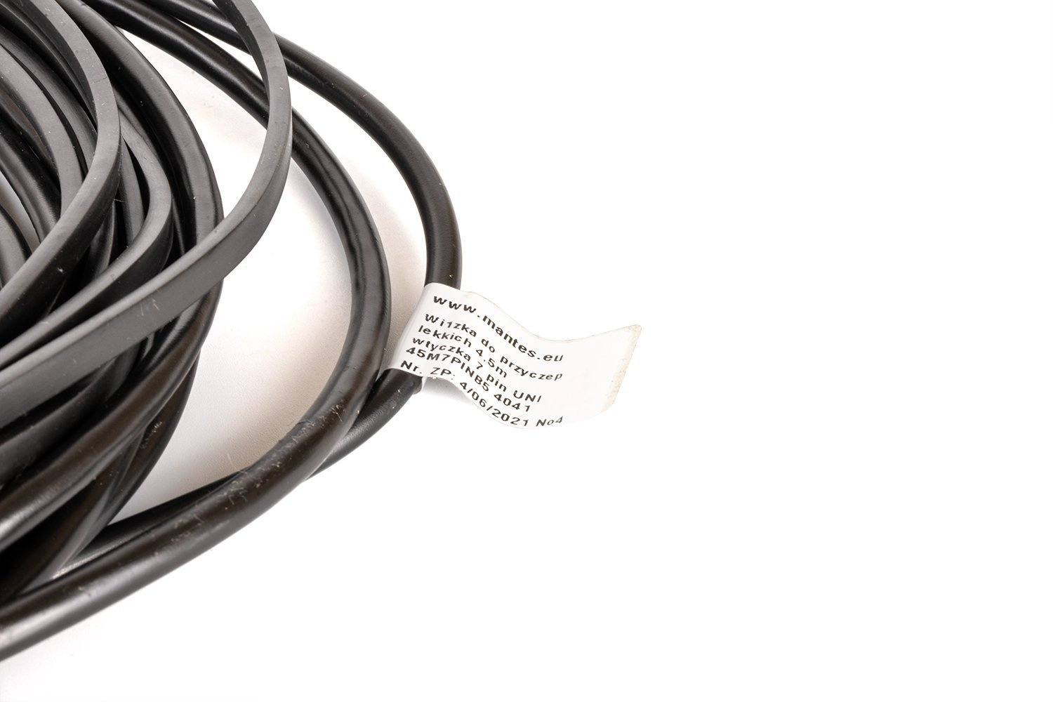 Le système électrique MANTES est une solution pratique et fiable pour les remorques de voiture. Le câble principal de 5,2 mètres, d'une section de 0,5 mm², est équipé d'une prise standard à 7 broches , garantissant une compatibilité universelle avec la plupart des véhicules.