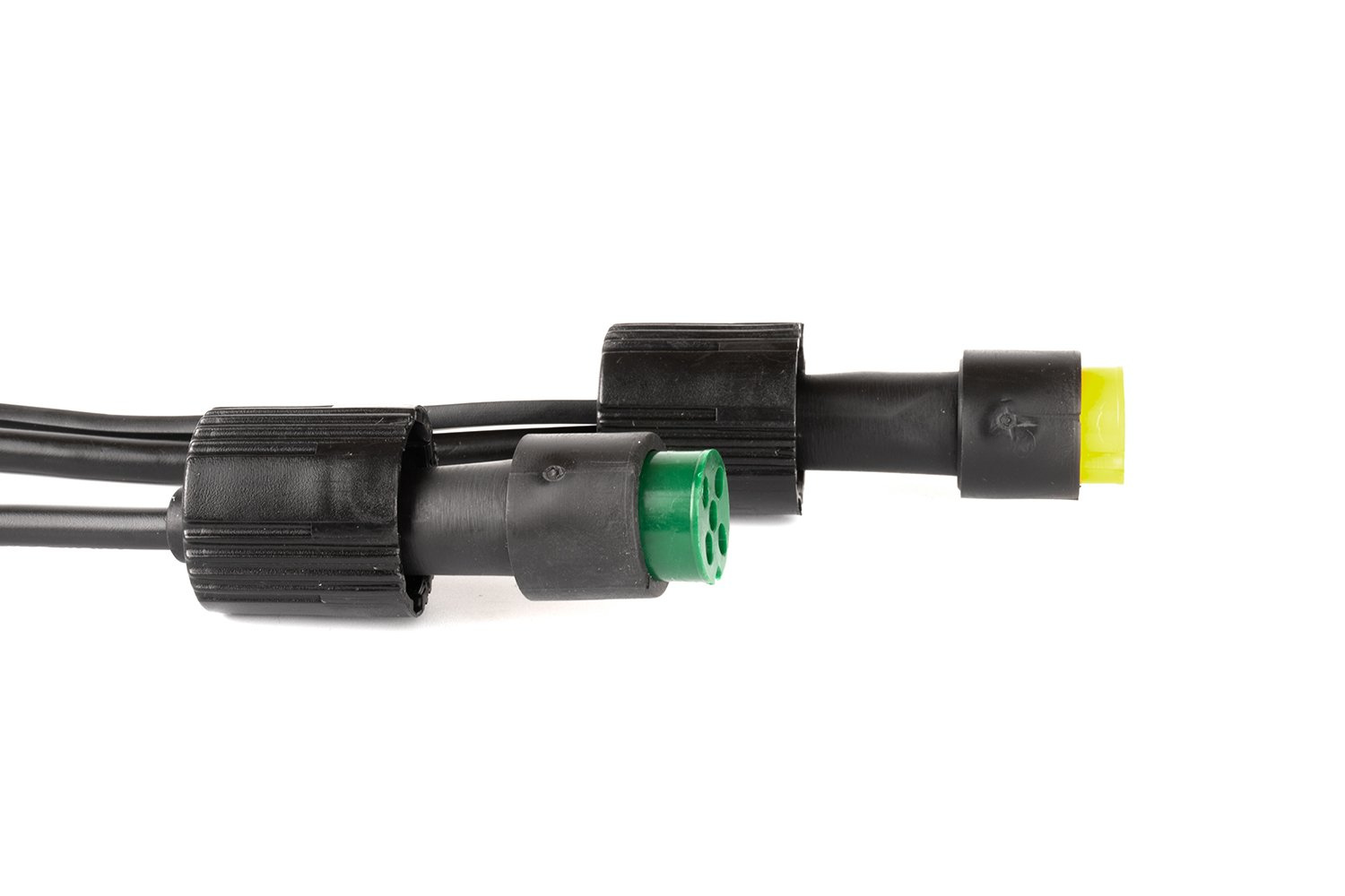 Le faisceau est équipé de deux connecteurs à baïonnette 5 broches pour le raccordement des feux arrière. Ce système assure une installation rapide et sûre, éliminant ainsi tout risque de déconnexion accidentelle pendant la conduite. La conception du connecteur garantit une connexion étanche et protège les contacts de la corrosion, garantissant ainsi un fonctionnement durable et sans problème de l'ensemble du système d'éclairage de la remorque.