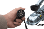 - Timon rabattable en V avec anneau d'amarrage de la marque WINTERHOFF avec témoin d'accrochage et câble de rupture en acier.