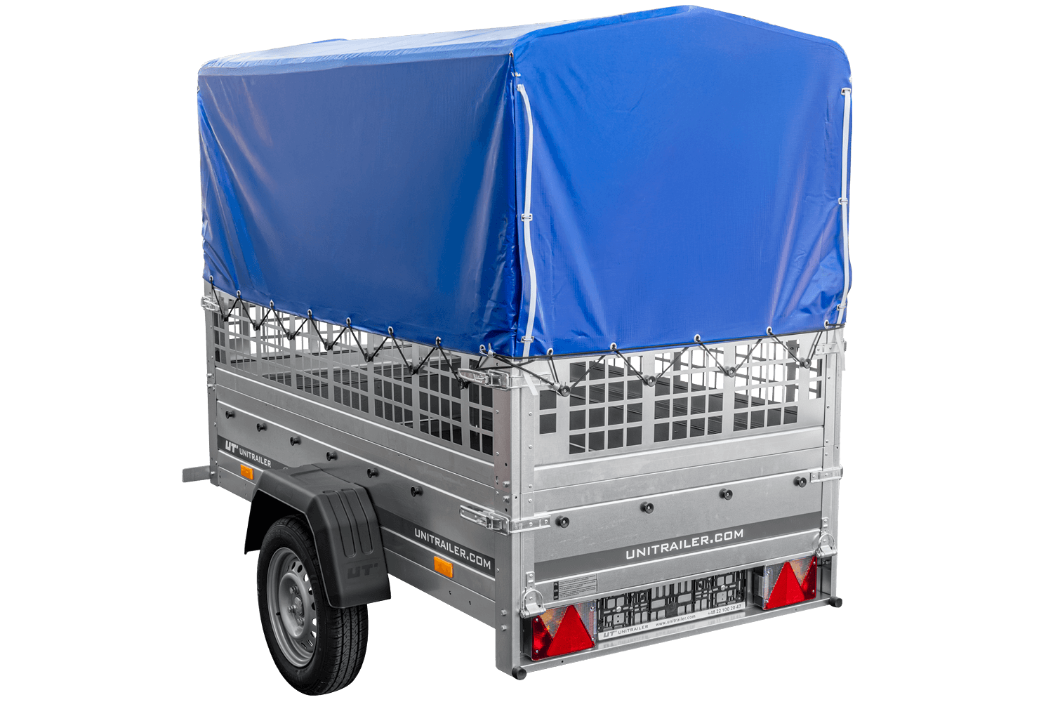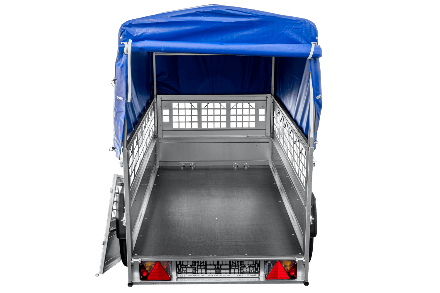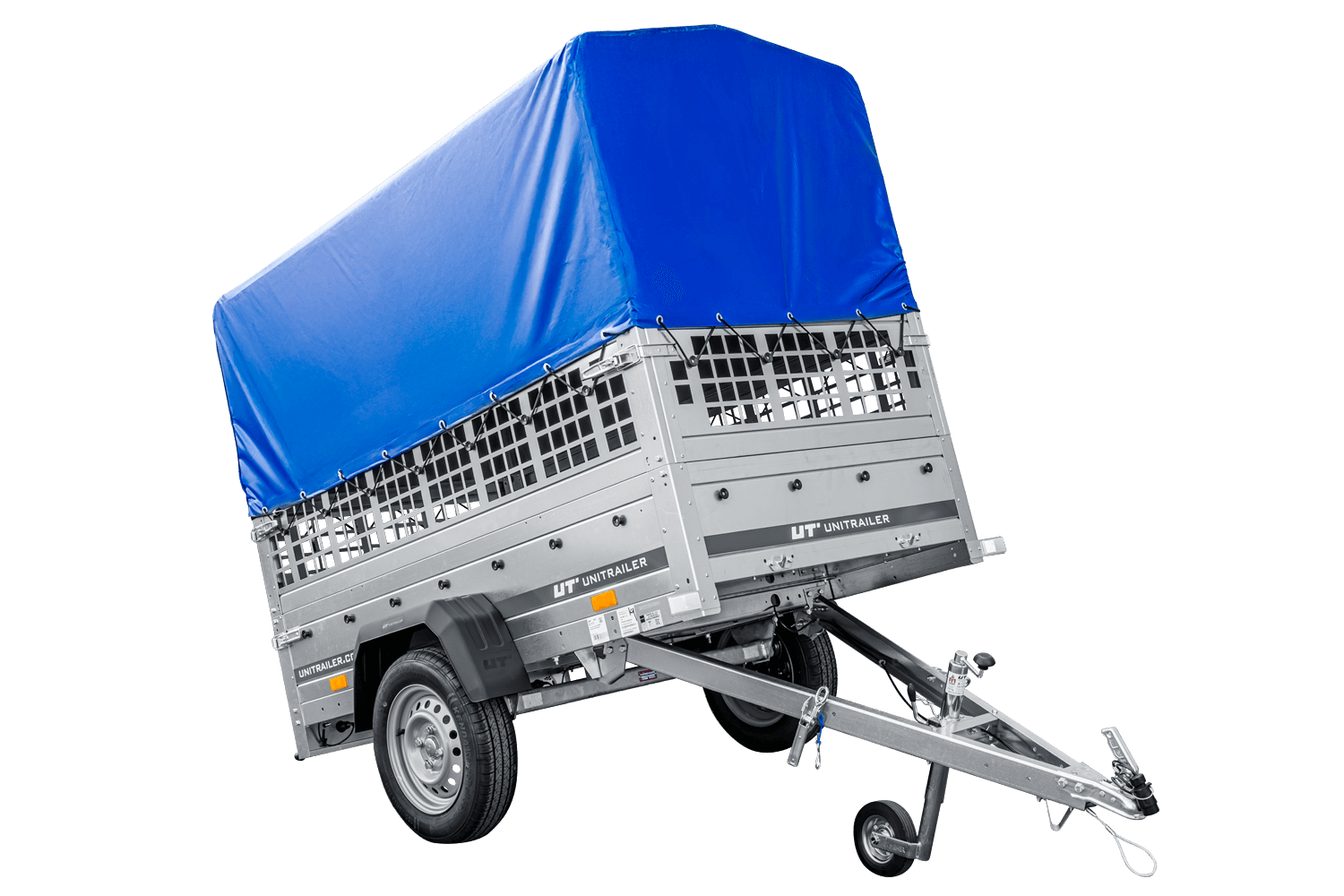 Notre grande remorque à benne basculante est livrée directement à votre maison. Vous n'avez pas à vous inquiéter de devoir monter la remorque, parce que la remorque est entièrement assemblée par nous et prête à être utilisée dès l'instant où vous la recevez. En outre, la remorque est fournie avec tous les documents nécessaires comme la facture TVA, certificat d'autorisation et homologation. Les remorques UNITRAILER se caractérisent par une très grande durabilité avec un service de garantie de 2 ans dont vous pouvez profiter dans plus de 150 sites dans l'ensemble de l'Europe.
