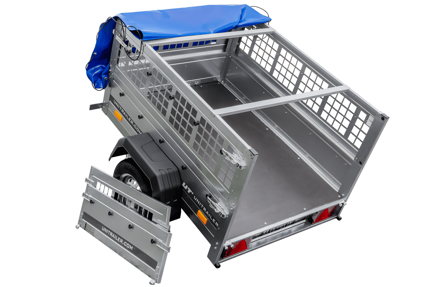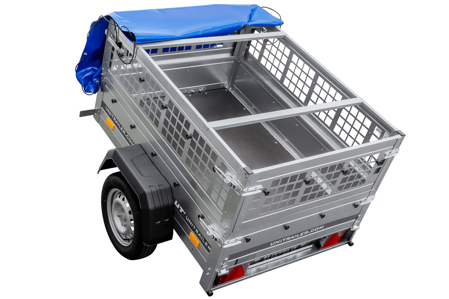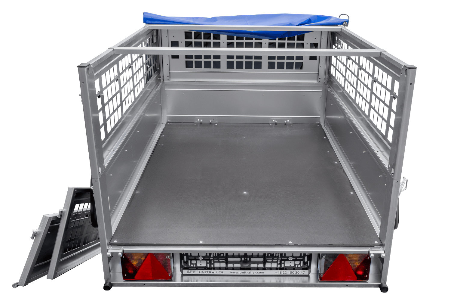 Ici, nous offrons aussi des rehausses de ridelles grillagées avec une bâche plate dans l'ensemble qui protégeront votre cargaison contre toutes les influences atmosphériques. La roue jockey (aussi incluse dans l'ensemble) permet de mieux manœuvrer la remorque détachée du crochet. Le timon pliable vous donne la possibilité de basculer la remorque de telle manière que vous soyez capable de charger et décharger votre remorque beaucoup plus rapide que d'habitude. Cette solution n'est disponible que dans les remorques plus avancées, qui coûtent souvent beaucoup plus cher que notre remorque en question. Elle sera, avant tout, parfaite pour des réparations, transport des meubles, du bois, des matériaux de construction, des outils et toutes les autres choses que vous aviez transportées dans votre voiture jusqu'à présent. En utilisant les rehausses de ridelles supplémentaires et une bâche plate, vous obtenez jusqu'à 70 cm de hauteur de la surface de transport. Vous pouvez également monter des supports latéraux, dispositifs de fixation sur le plancher, un filet de fixation de charge ou acheter une roue de secours ou des cales de roue. Vous adapterez votre remorque à vos besoins de manière très facile.