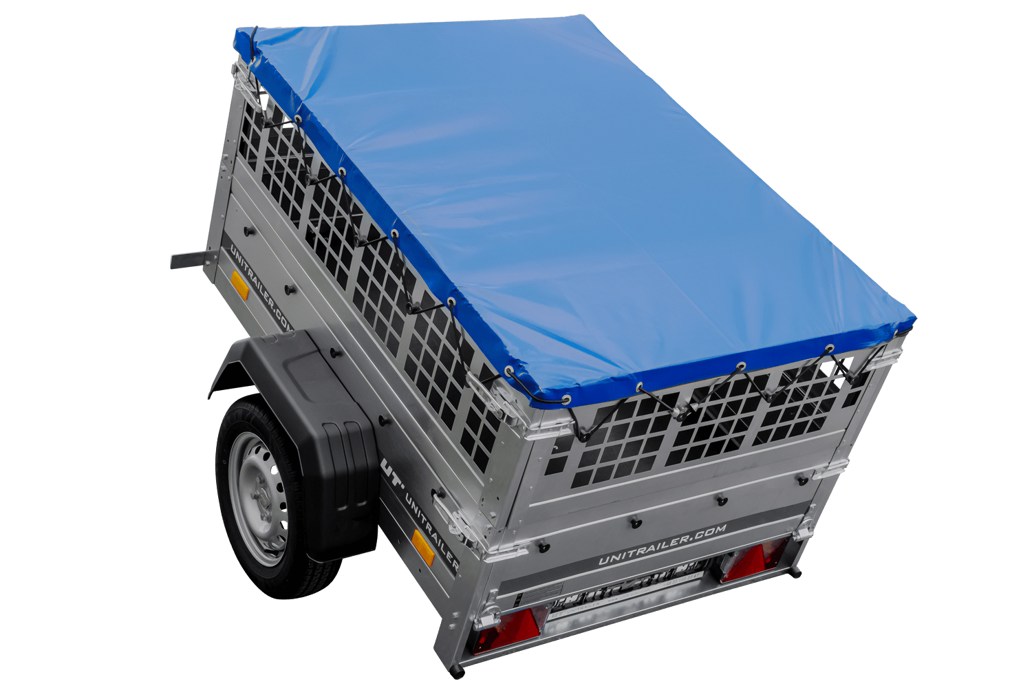 Petite remorque à benne basculante avec bâche plate bleue, rehausses de ridelles grillagées et roue jockey du modèle Garden Trailer 150 KIPP. Grâce à la petite surface de transport de 150x106 cm, la remorque vous permettra de transporter de lourdes charges ou d'objets de petites dimensions qui ne seraient normalement pas transportables dans votre voiture. En outre, le PTAC maximal de 750 kg permet à chaque conducteur de fixer la remorque au crochet. La bâche haute avec arceau et rehausses de ridelles grillagées offrent une protection supplémentaire pour les marchandises transportées. En utilisant l'essieu directeur moderne de la marque AL-KO ou KNOTT, nous garantissons qu'aucun trou sur la route ne va poser de problèmes, même lorsque vous voyagez avec une surface de transport déchargée. Avec notre petite remorque à benne basculante du modèle Garden Trailer 150 KIPP, le transport de vos biens sera toujours confortable et sécuritaire.
