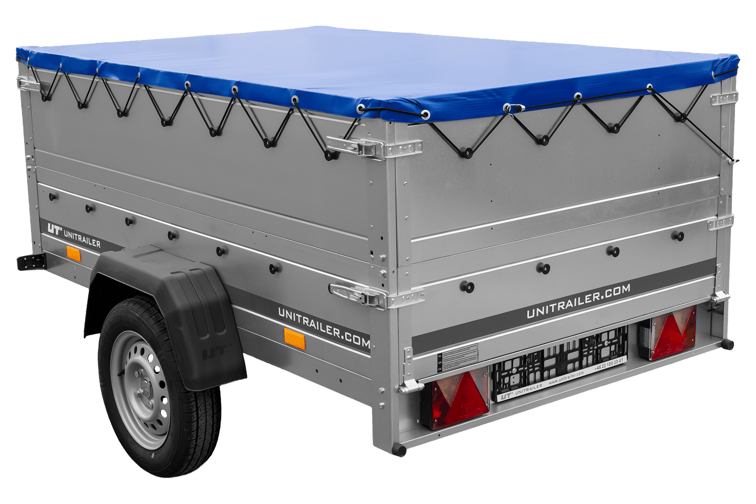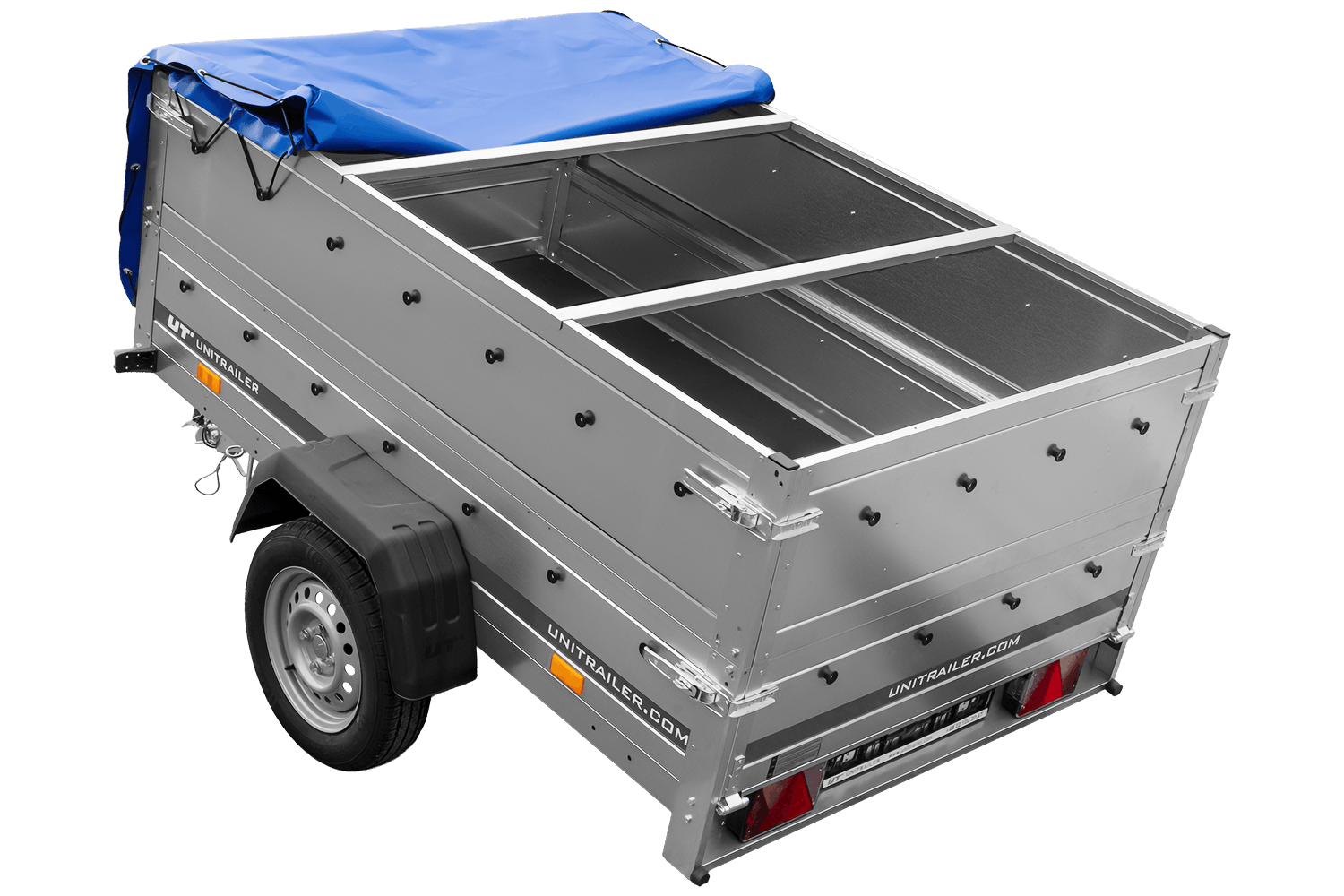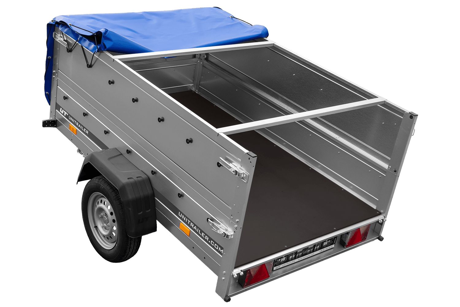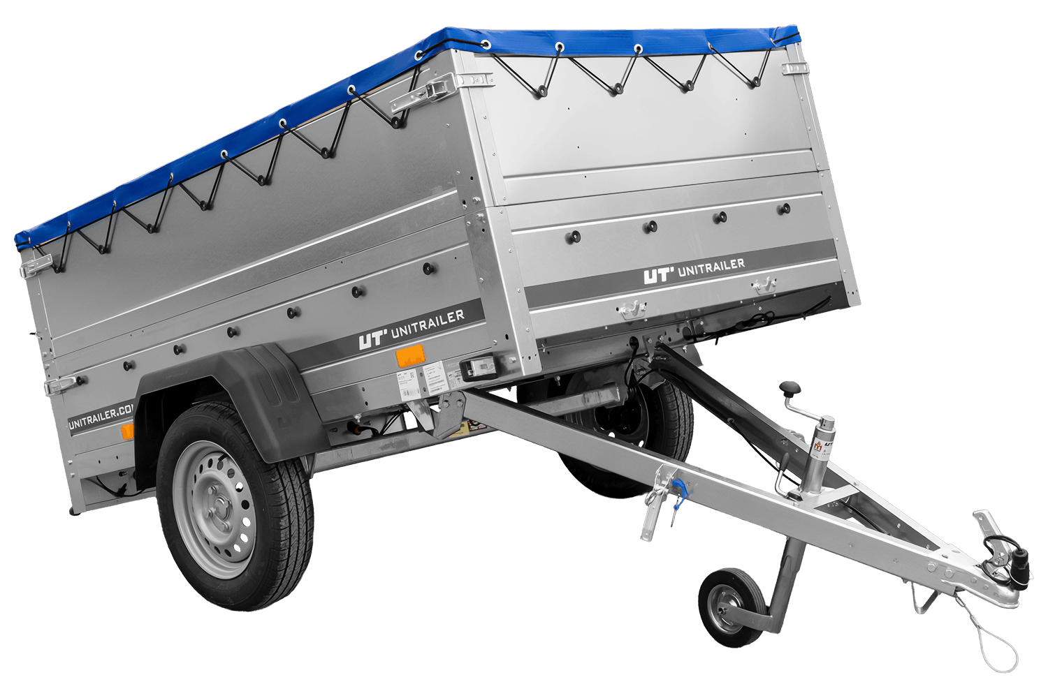 Remorque porte-voitures 200x125 UNITRAILER GARDEN 201 KIPP avec côtés BIS et bâche bleue