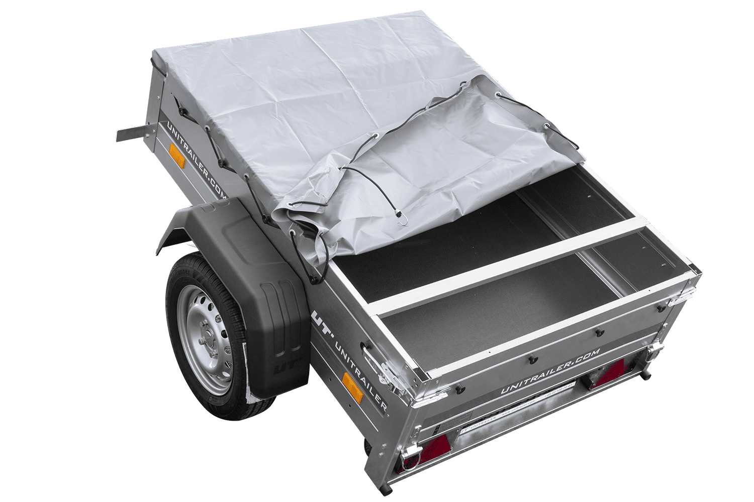 Petite remorque à vendre - Garden Trailer 150 KIPP [avec bâche plate grise, roue jockey et tiges de support bâche]
