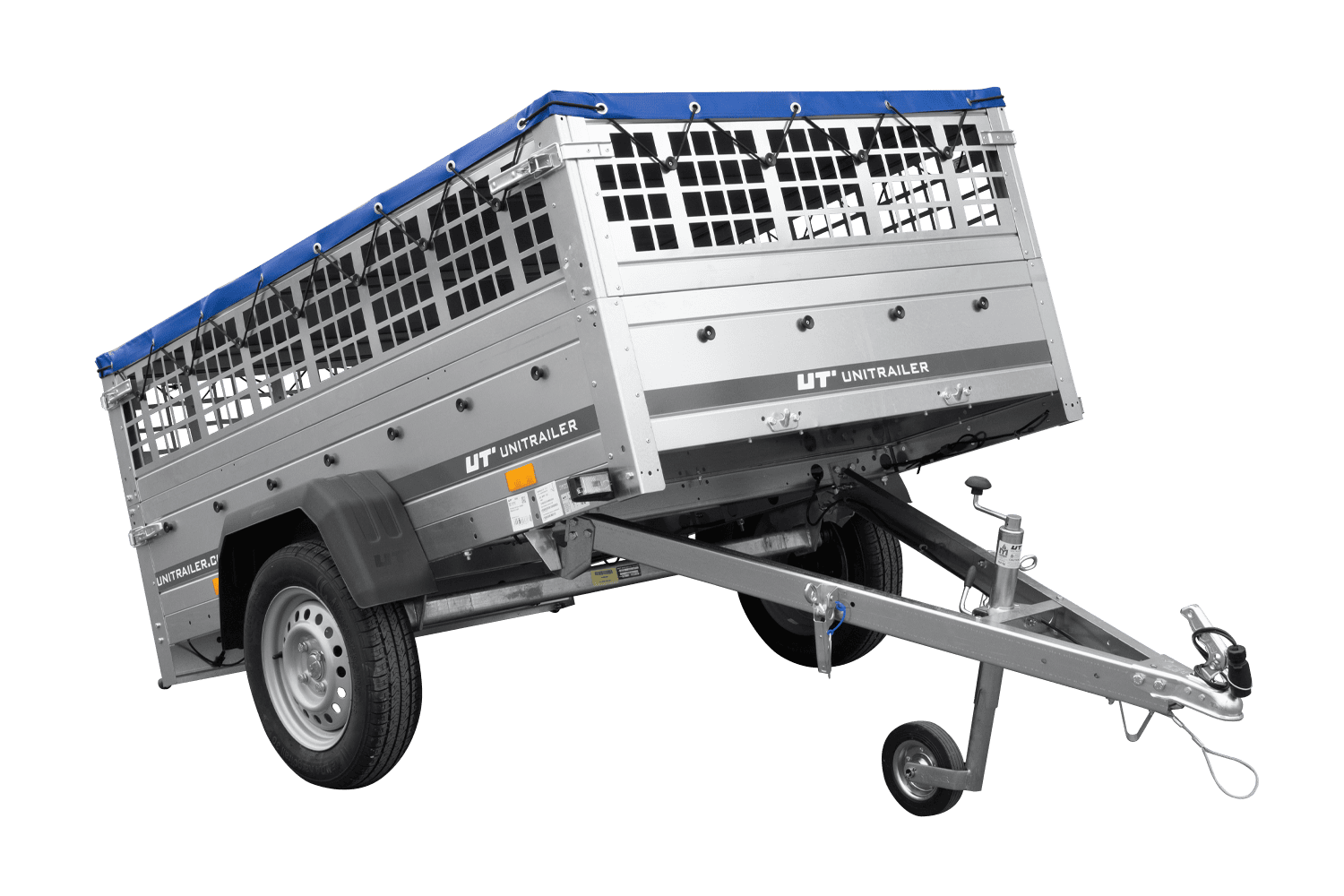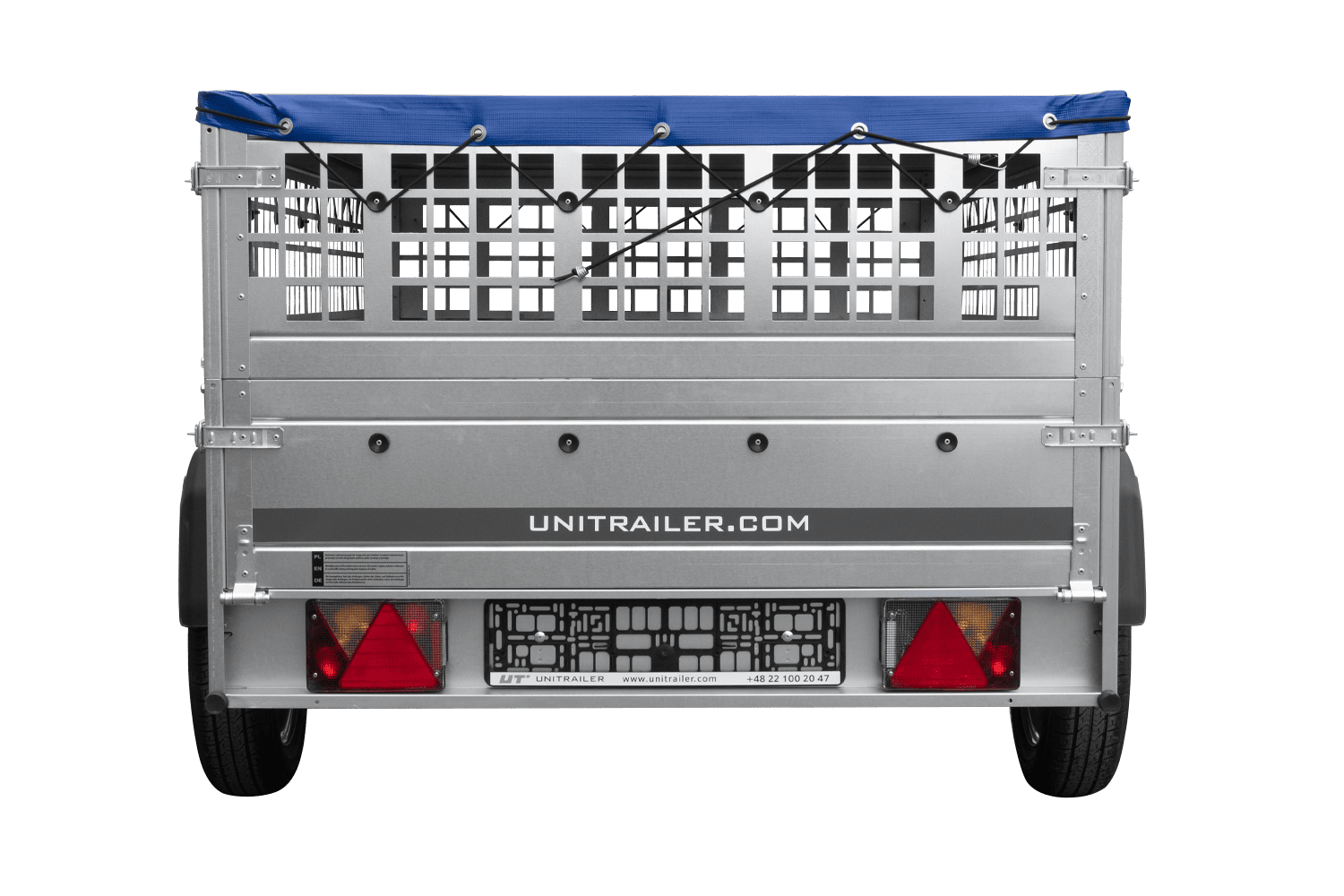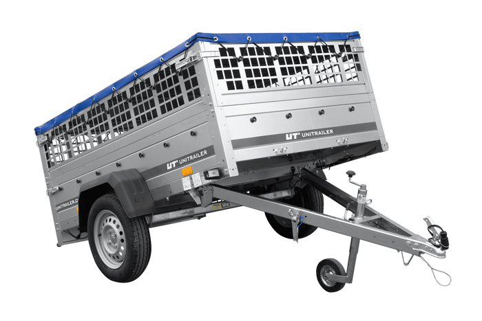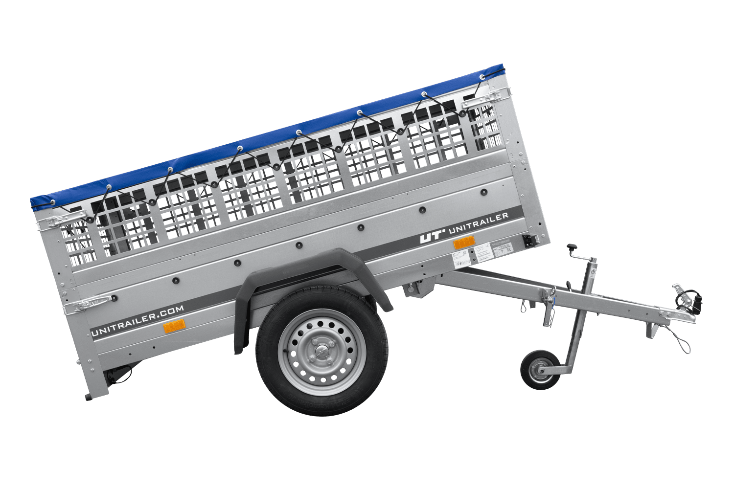 Remorque à un essieu 200x125 UNITRAILER GARDEN 201 KIPP avec côtés en filet, châssis H-0 et bâche bleue
