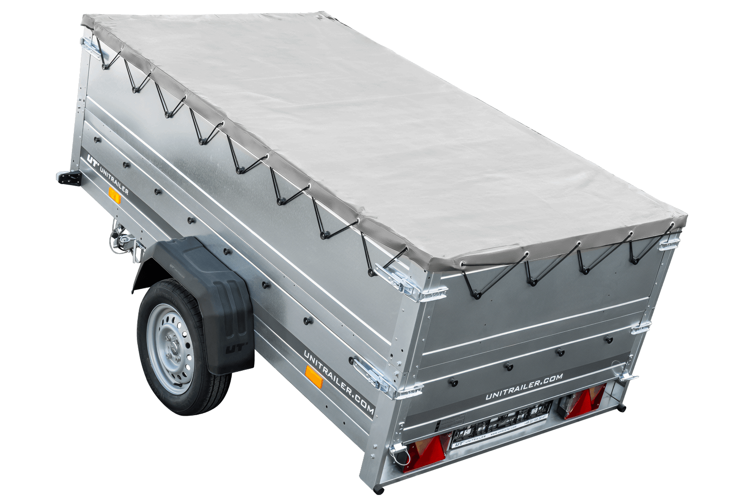 Grande remorque 230x125 avec bâche plate grise, tiges de support bâche, rehausses de ridelles et roue jockey - Garden Trailer 230 KIPP