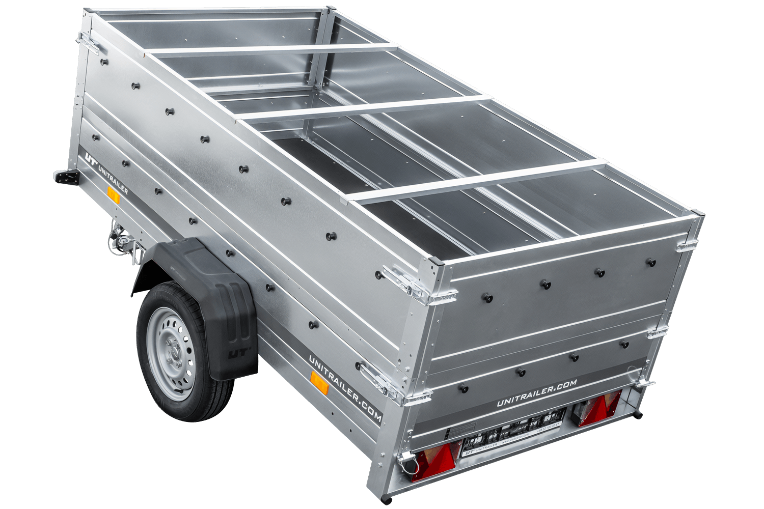 - Grande remorque à benne basculante UNITRAILER du modèle Garden Trailer 230 KIPP avec timon pliable. Surface de transport de 230x125 cm. Hauteur totale de la surface de transport de 70 cm. PTAC 300-750 kg. Livrée directement à votre domicile.