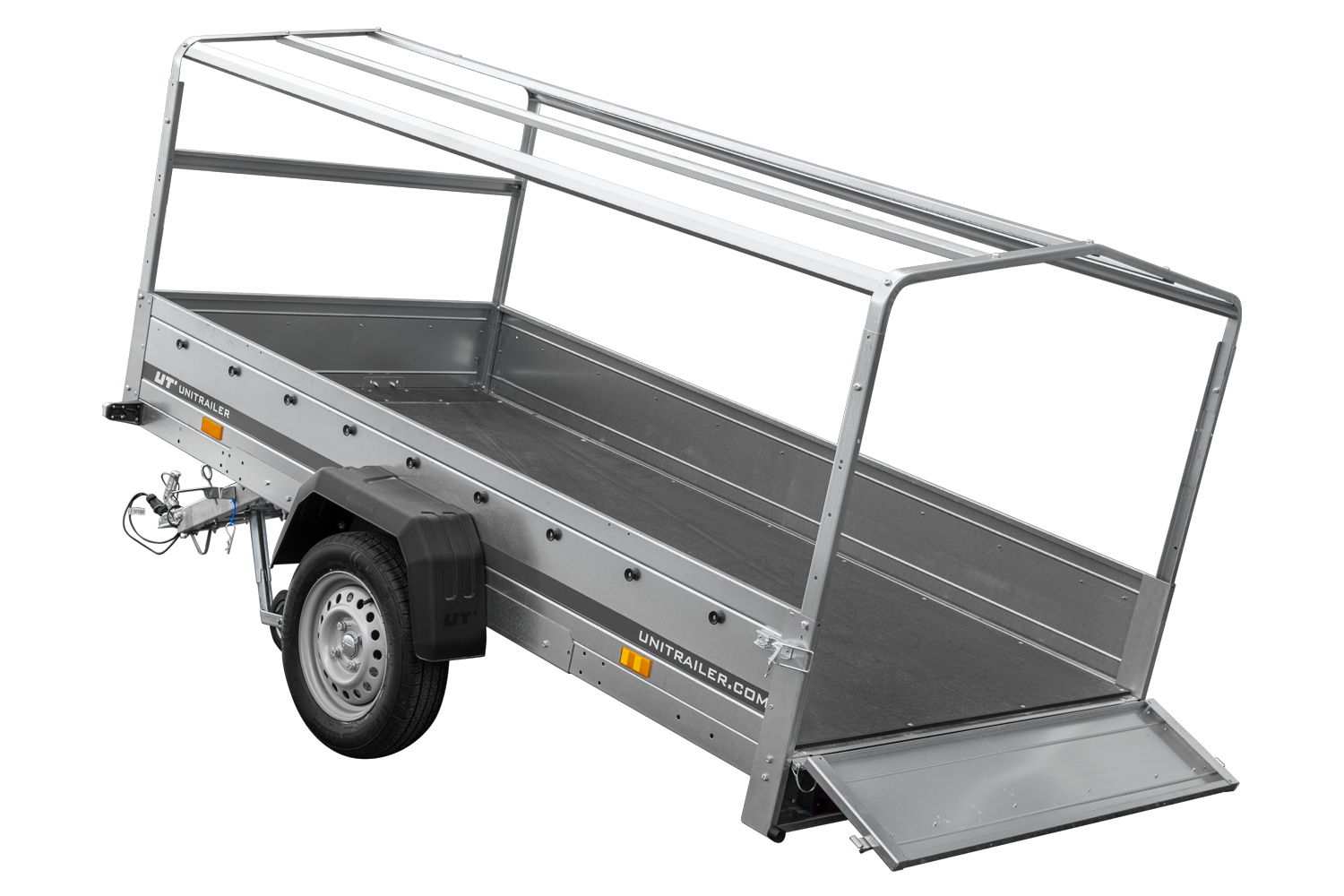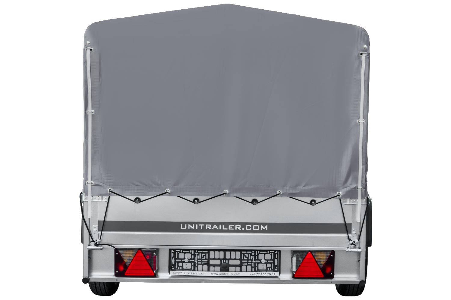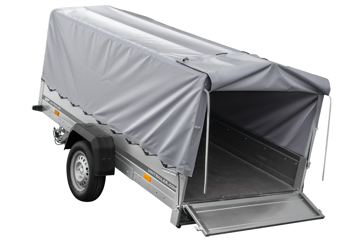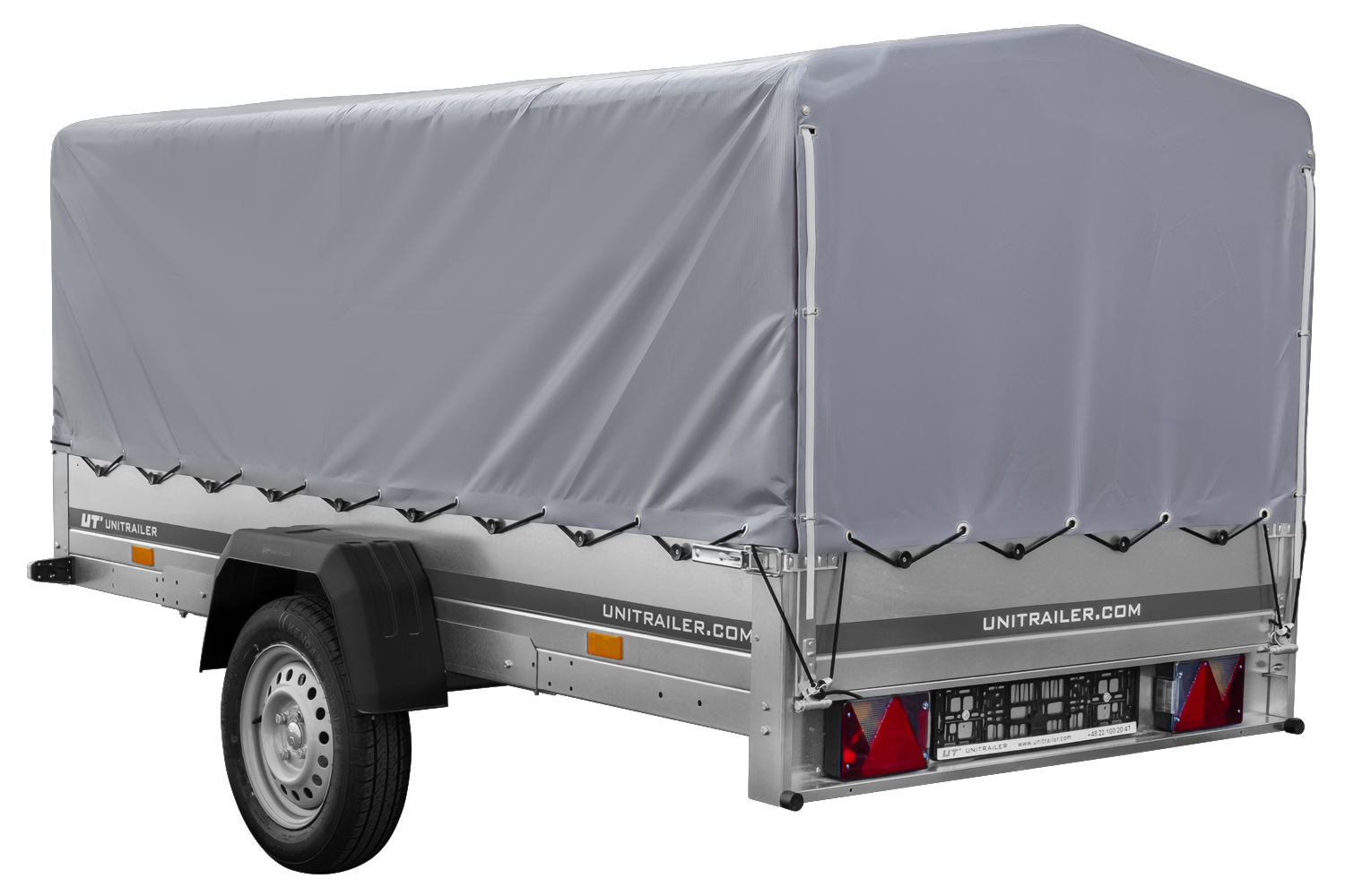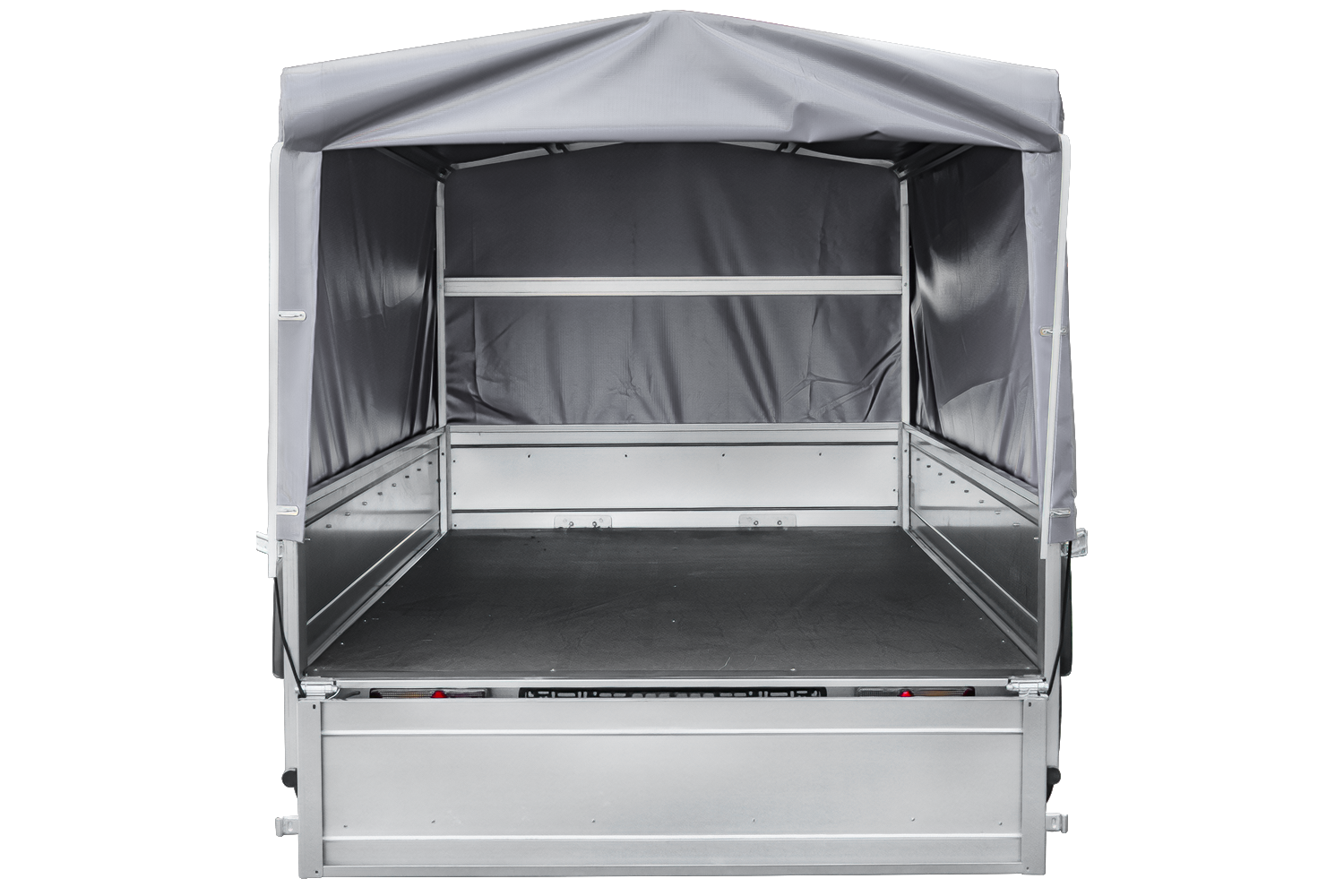 - La remorque avec un arceau et une bâche grise GARDEN TRAILER 264 est une remorque à un essieu avec un PTC jusqu'à 750 kg. Pour faciliter le chargement et le déchargement, la remorque a la possibilité d'ouverture ou de démontage de ridelle arrière.