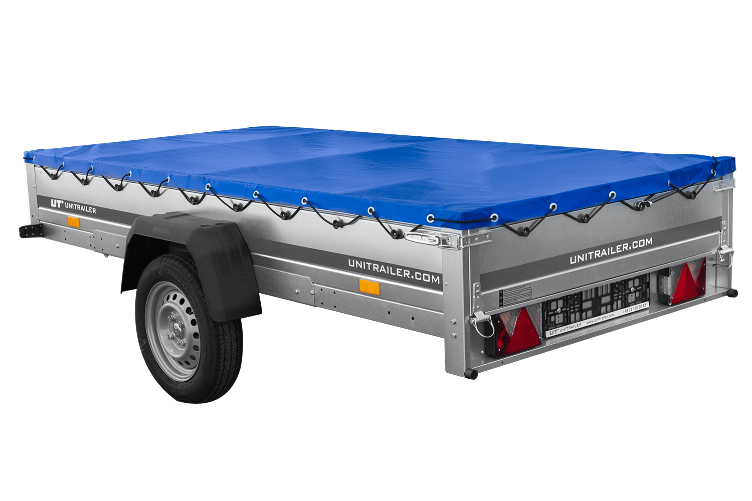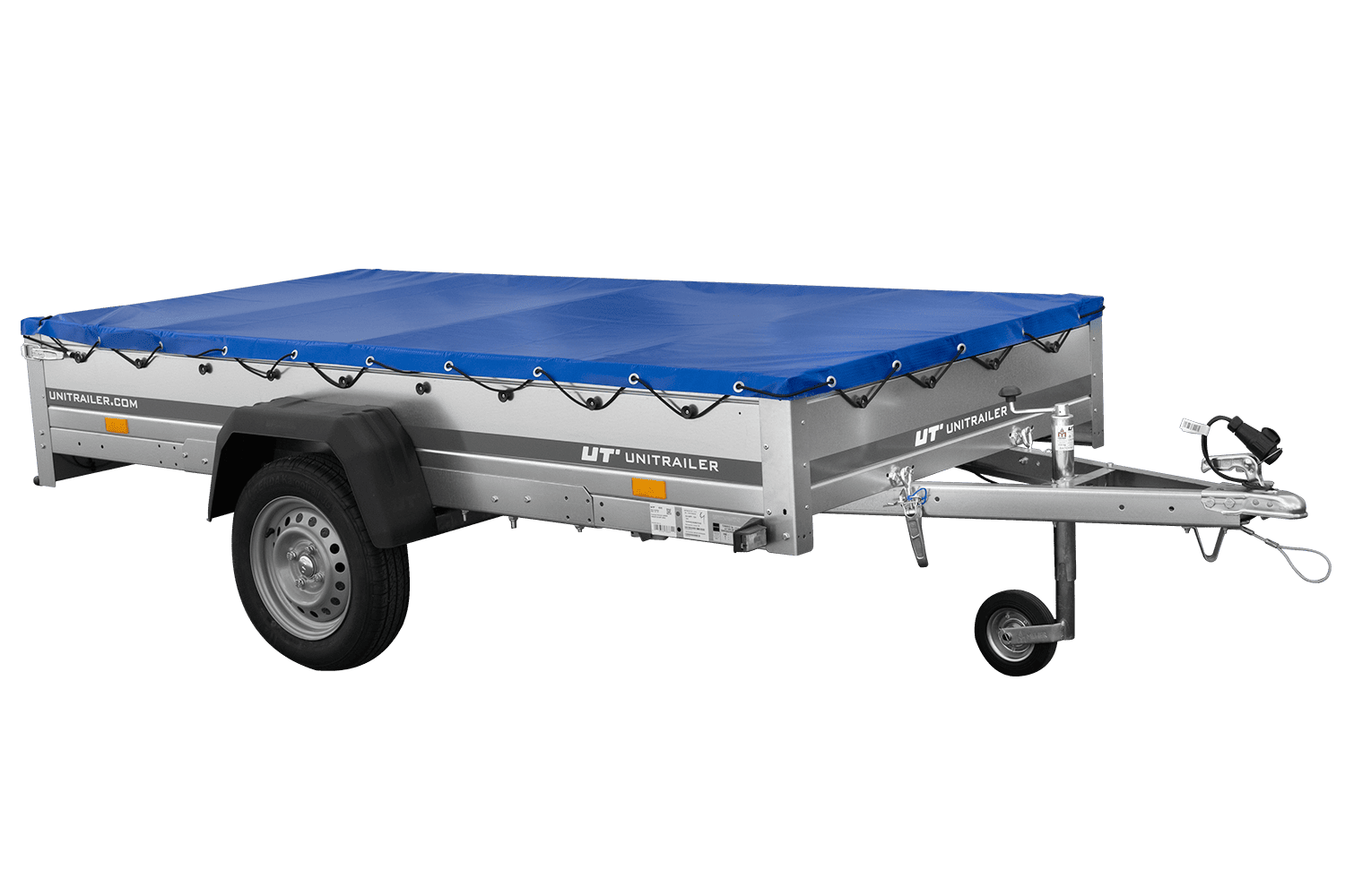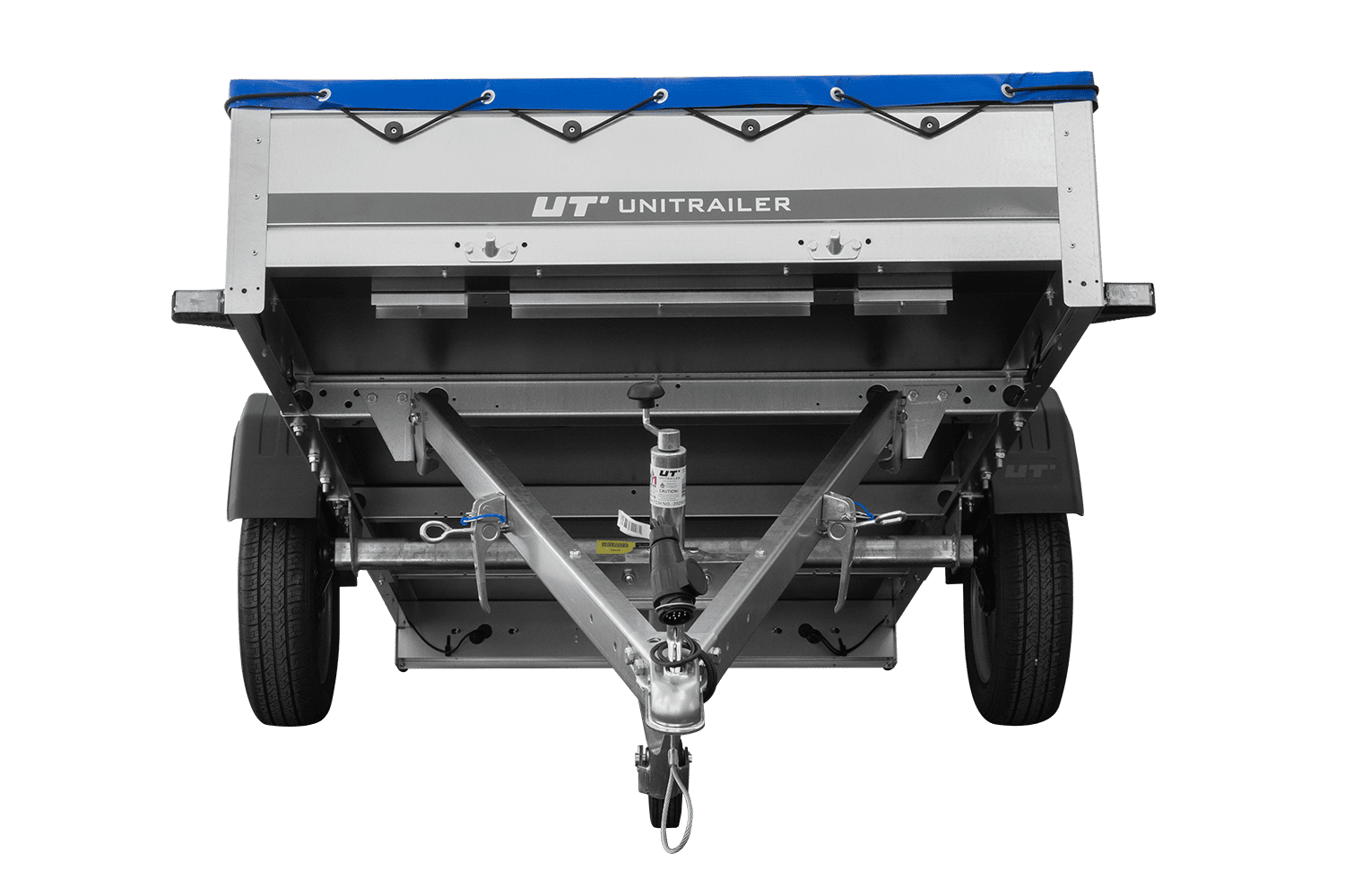 Remorque à un essieu Unitrailer GARDEN TRAILER 264 KIPP complète avec roue jockey, châssis plat H-0 et bâche bleue