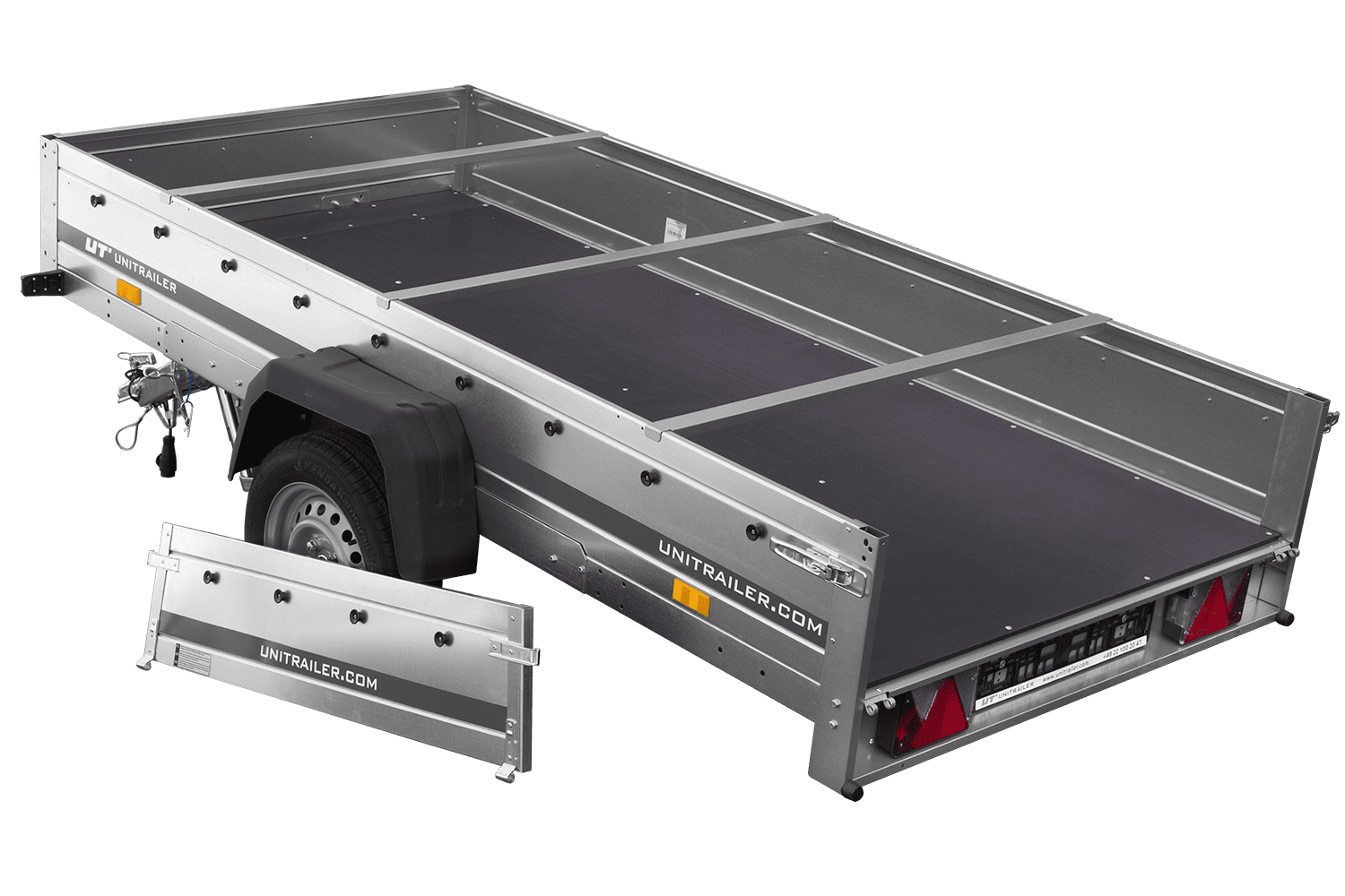 - Roues placées sur les côtés de la surface de transport, ce qui entraîne un centre de gravité plus bas, une meilleure maniabilité et aucun rebond de la remorque, même en roulant à vide