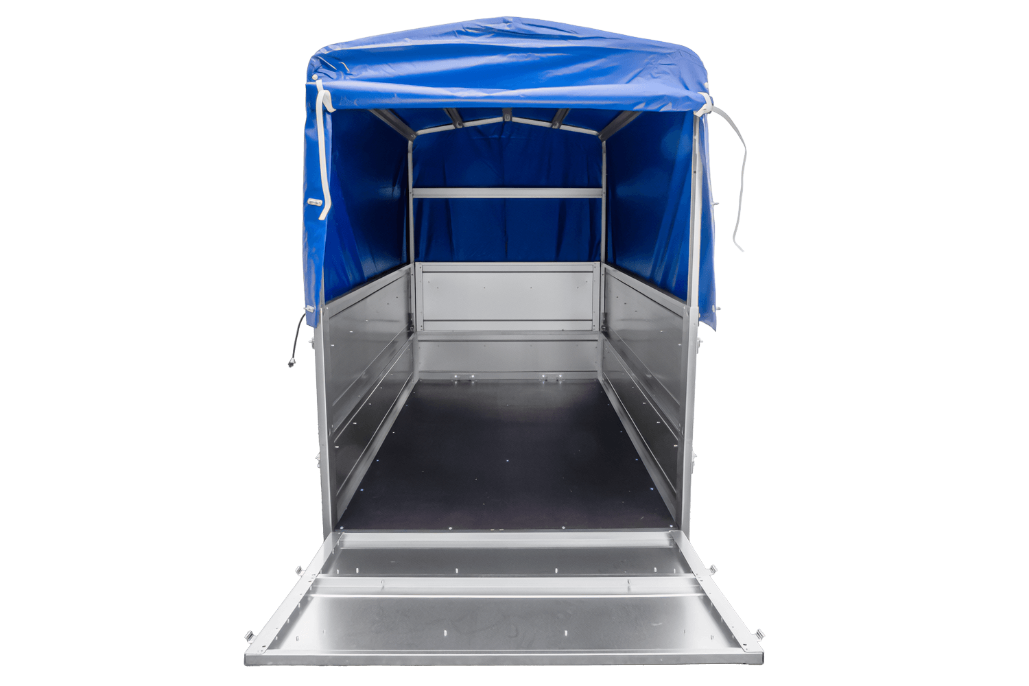 Remorque voiture avec châssis haut, bâche bleue et rehausses - Garden Trailer 200 Kipp