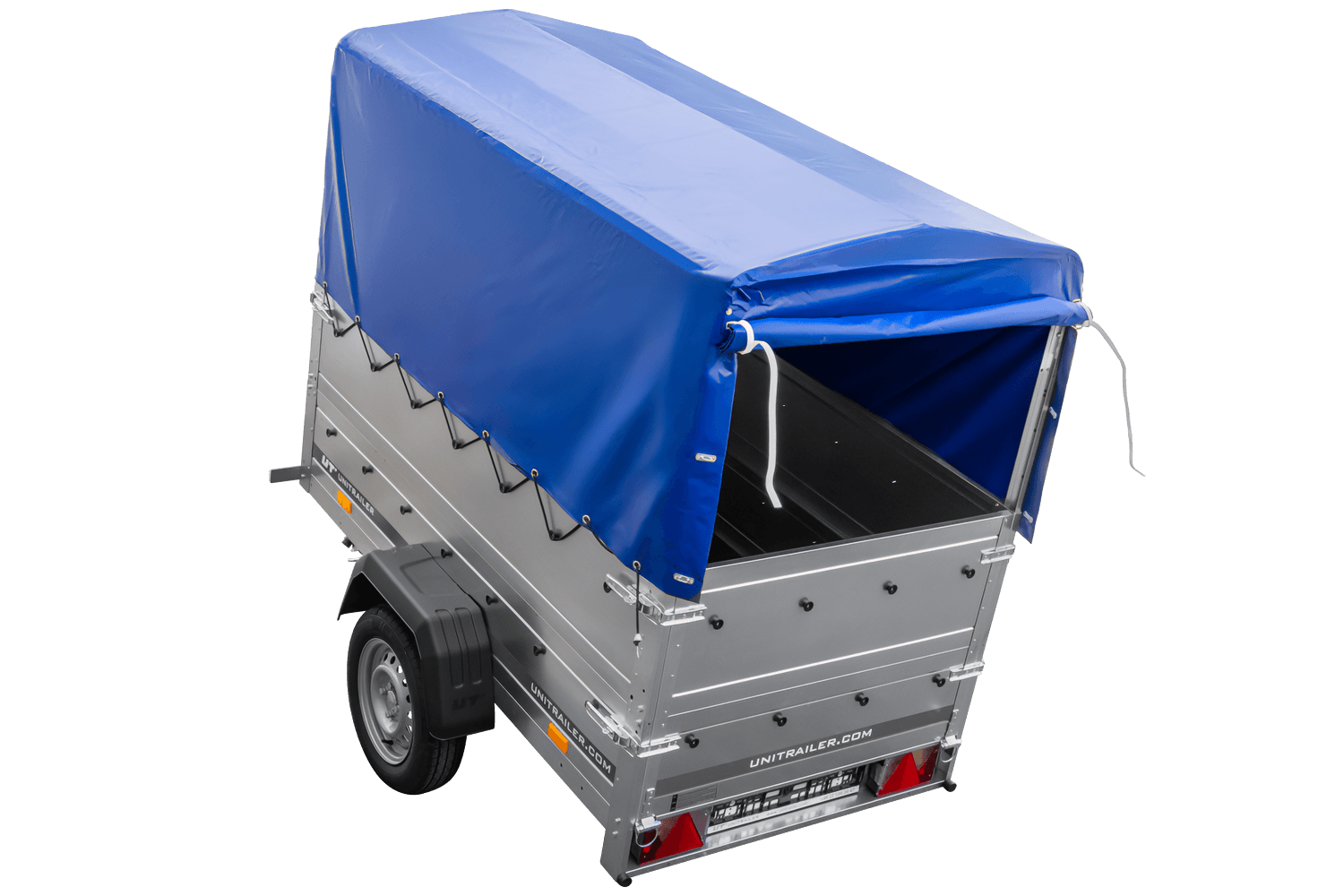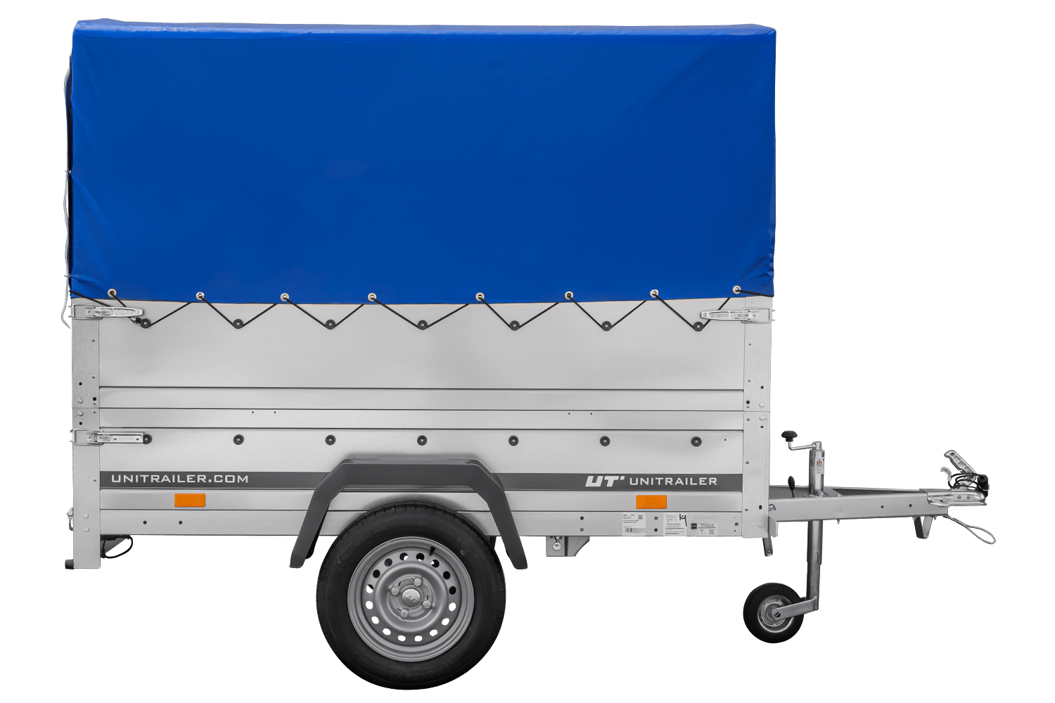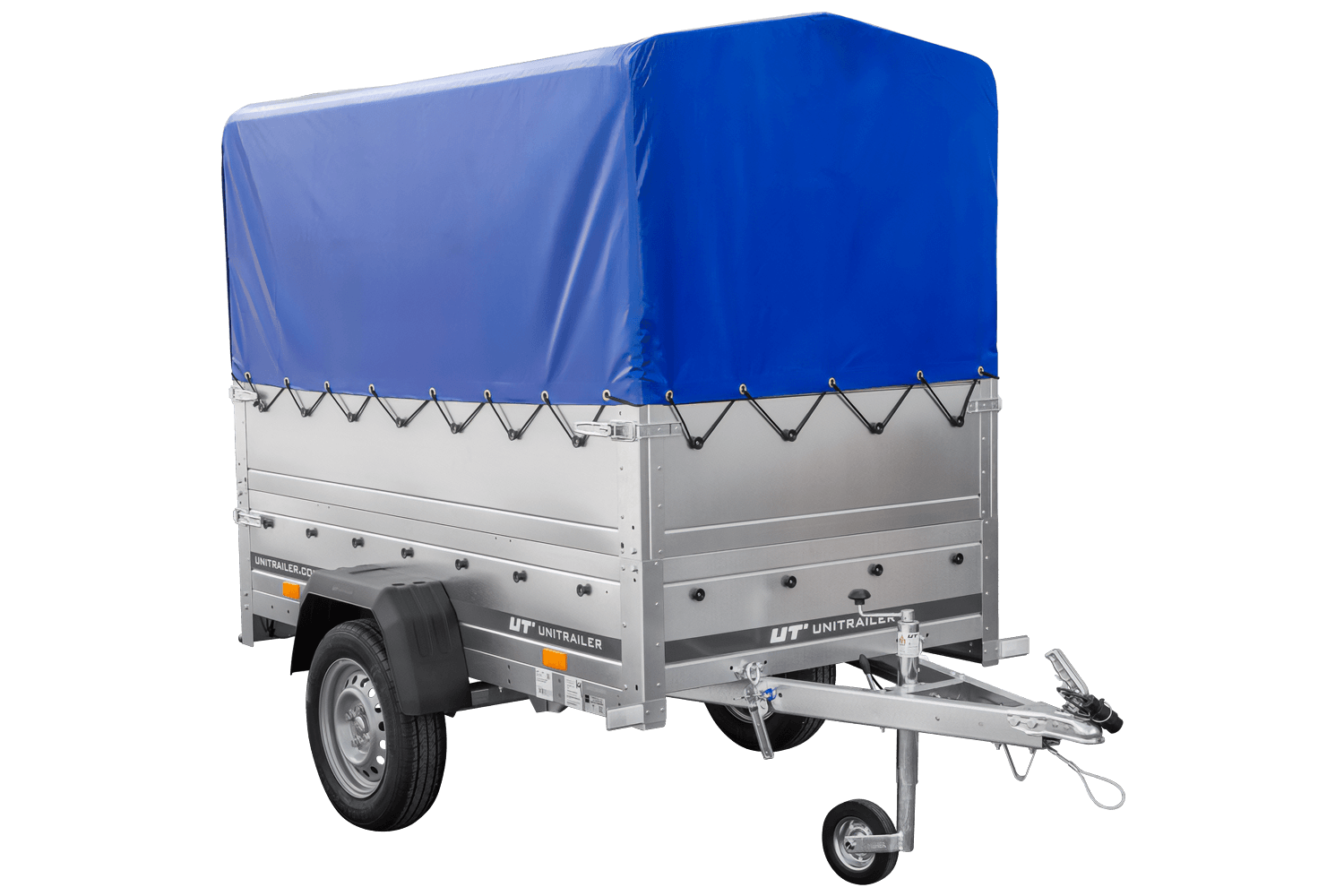 Des buffets et un cadre avec une bâche créent un espace jusqu'à 150 cm au point le plus haut. Ce modèle est particulièrement recommandé pour le transport d'objets volumineux tels que des meubles, des arbustes d'ornement, des sacs contenant de la terre ou des engrais. L'espace de chargement permet une bonne organisation des marchandises transportées, et la bâche protégera les matériaux sensibles aux conditions climatiques. Toute la construction de la remorque est faite de matériaux et de pièces de renommée européenne. C'est un élément qui distingue notre remorque de voiture des produits des concurrents.