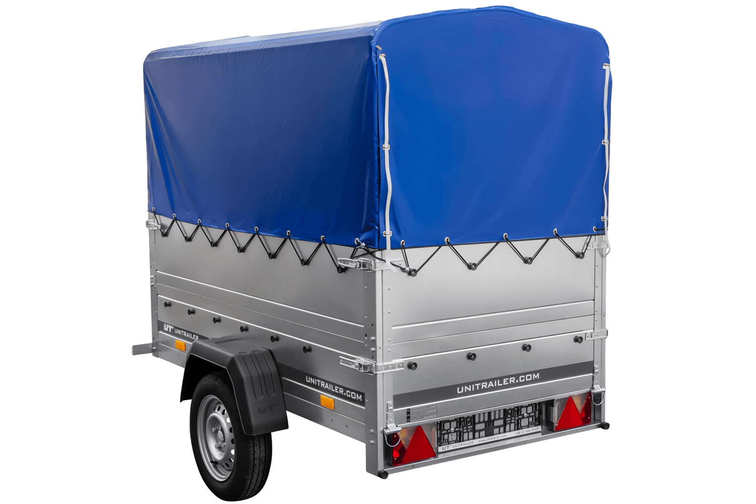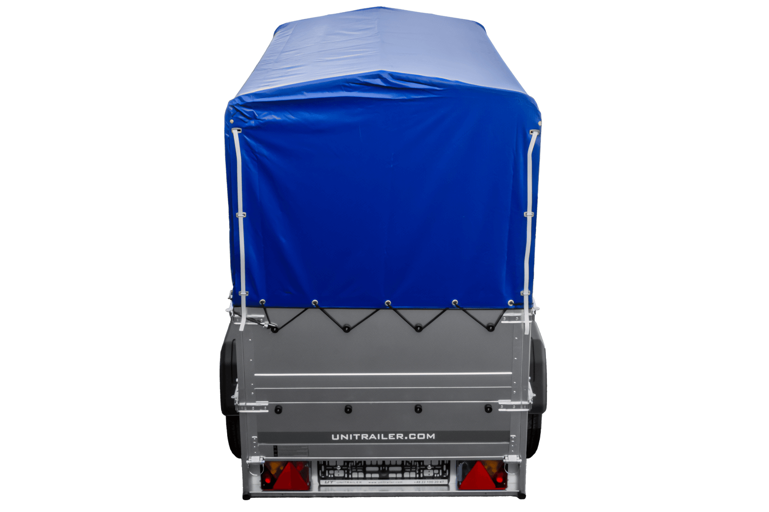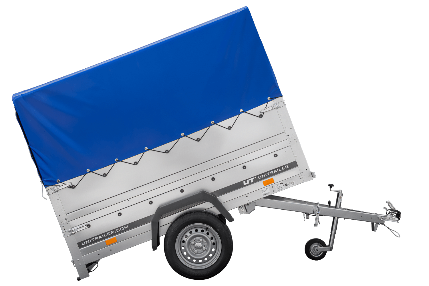 Des buffets et un cadre avec une bâche créent un espace jusqu'à 150 cm au point le plus haut. Ce modèle est particulièrement recommandé pour le transport d'objets volumineux tels que des meubles, des arbustes d'ornement, des sacs contenant de la terre ou des engrais. L'espace de chargement permet une bonne organisation des marchandises transportées, et la bâche protégera les matériaux sensibles aux conditions climatiques. Toute la construction de la remorque est faite de matériaux et de pièces de renommée européenne. C'est un élément qui distingue notre remorque de voiture des produits des concurrents.