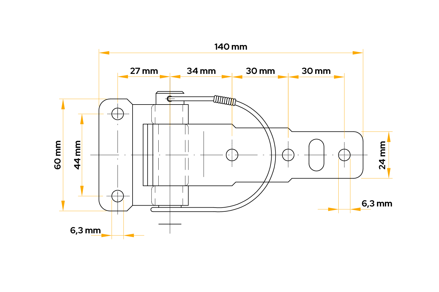 La charnière latérale BSCH 30-2 de WINTERHOFF est un composant robuste et durable conçu pour le montage des panneaux latéraux des remorques utilitaires, agricoles et de transport. D'une longueur de 140 mm et d'une largeur de 60 mm, elle est polyvalente et s'adapte facilement à différents types de carrosserie. Sa finition soignée garantit un fonctionnement stable et facilite l'ouverture et la fermeture des panneaux latéraux, améliorant ainsi la fonctionnalité de l'ensemble de la remorque.