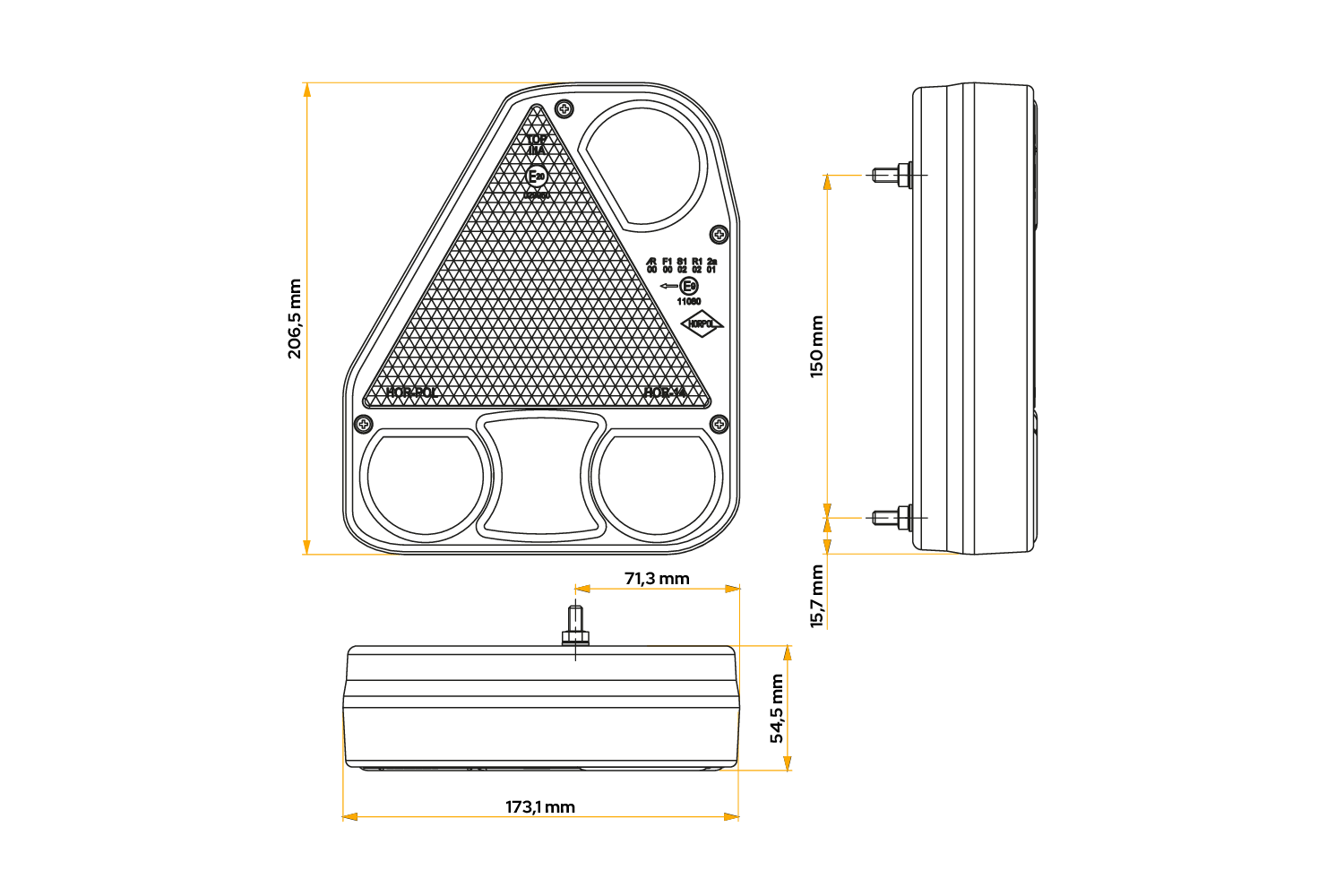 Le feu arrière LED LZD 776 de HORPOL est conçu pour être monté sur le côté gauche du véhicule et a les dimensions suivantes : largeur 206,5 mm, hauteur 174 mm, profondeur 54,5 mm. Conçu pour fonctionner dans une plage de tension de 12 à 24 V, il peut être utilisé dans les remorques, les camions et les remorques, ce qui souligne son universalité. Le feu est dote d'un passe-câble et l'ensemble comprend un connecteur femelle, une gaine thermorétractable et un serre-câble pour une connexion de câble rapide et pratique. Grâce à l'utilisation de la technologie LED, le produit offre des performances élevées, une durabilité et une efficacité énergétique, garantissant la sécurité dans diverses conditions routières.