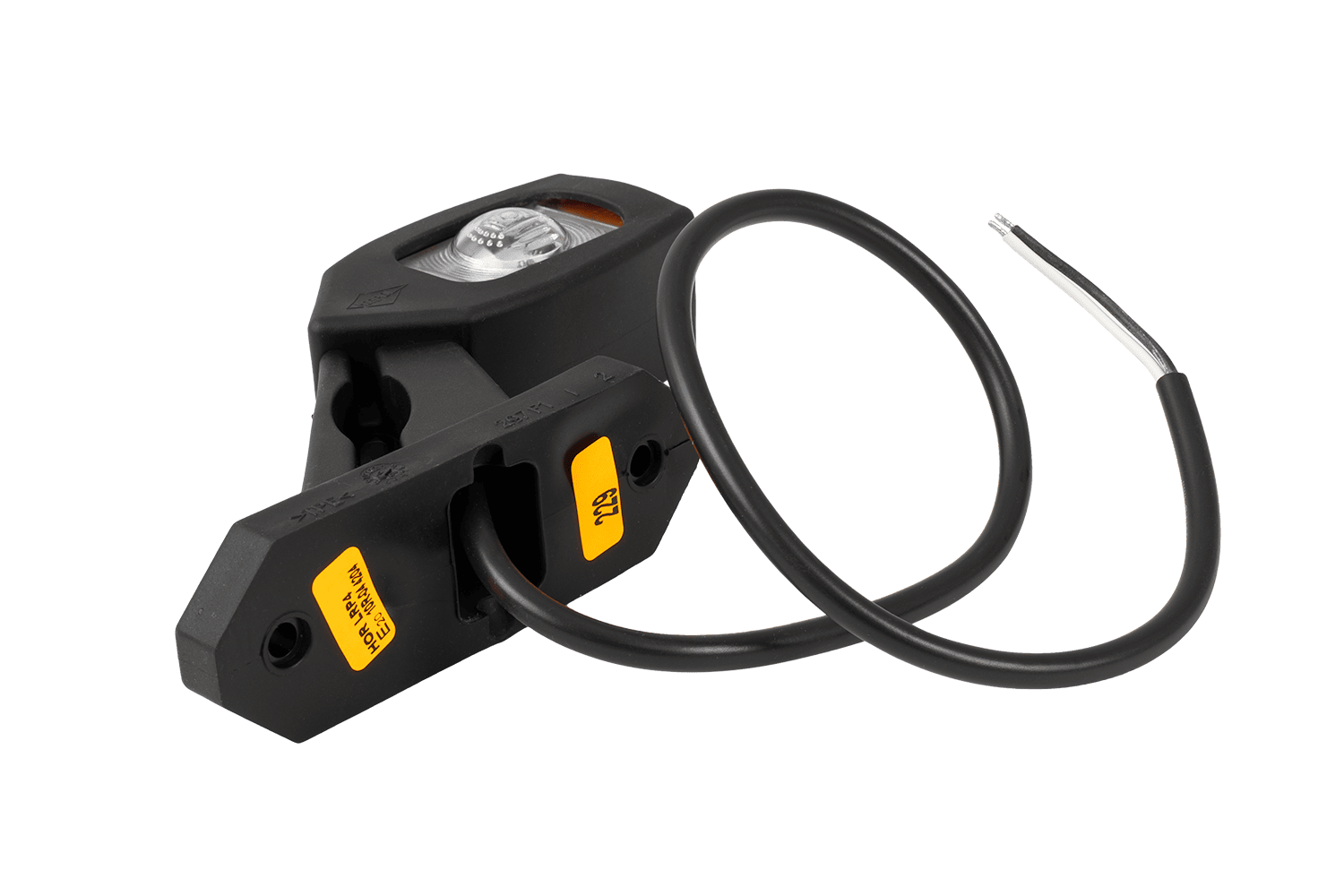 Le feu de gabarit HOR 53 (LD 2109/L) de HORPOL est conçu pour être monté sur le côté gauche du véhicule et a les dimensions suivantes : largeur 163 mm, hauteur 87 mm, profondeur 42 mm. Conçu pour fonctionner dans une plage de tension de 12 à 24 V, il peut être utilisé dans les remorques, les machines agricoles, les camions et les dépanneuses, ce qui souligne son universalité. Equipé d' un bras court en caoutchouc diagonal pour le montage et d'un câble rond de 0,5 m, il permet une installation facile et rapide. Grâce à l'utilisation de la technologie LED la lampe offre des performances élevées, une durabilité et une efficacité énergétique, garantissant la sécurité dans diverses conditions routières.