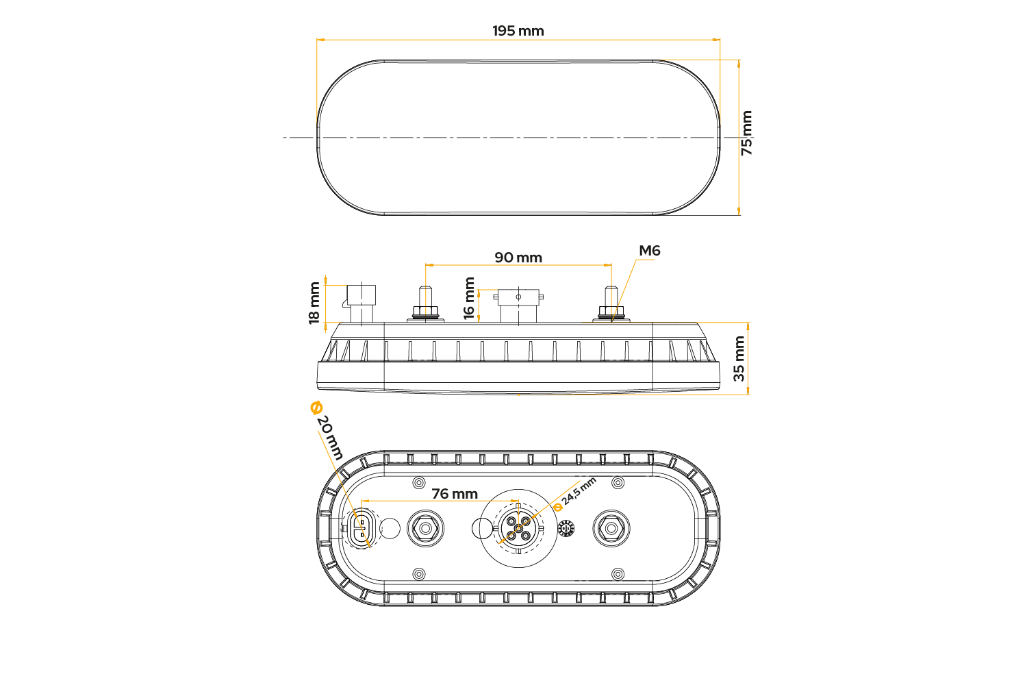 Le feu arrière LED FT-320 de FRISTOM, destiné à être installé aussi bien sur le côté gauche que droit du véhicule, a les dimensions suivantes : largeur 195 mm, hauteur 75 mm, profondeur 35 mm. Adapté pour fonctionner dans la plage de tension de 12 à 24 V, il est utilisé dans les remorques, les camions et les dépanneuses, ce qui souligne son universalité. Equipé d'un connecteur à baïonnette 5 broches, il permet une installation facile et rapide. Grâce à l'utilisation de la technologie LED, le produit garantit une efficacité, une durabilité et une efficacité énergétique élevées, garantissant la sécurité dans diverses conditions routières. La structure du feu est hermétique, résistante aux chocs et aux dommages mécaniques, et dispose également d'une protection électrique contre l'inversion de polarité, ce qui augmente encore sa fiabilité dans des conditions de fonctionnement difficiles.