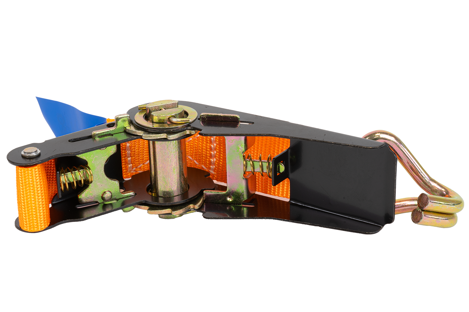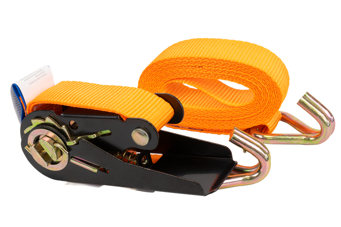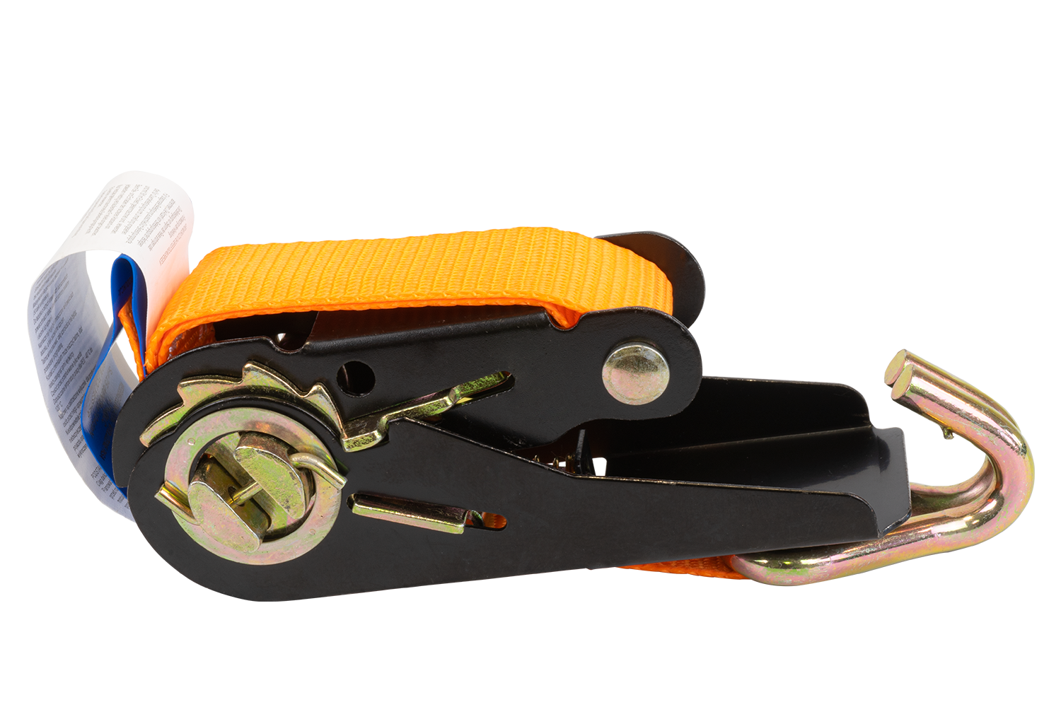 La sangle d'arrimage à cliquet orange KAMAR se compose de deux parties : une partie courte avec un cliquet et un crochet, et une partie longue avec une sangle et un crochet. La longueur totale de la sangle, boucle comprise, est de 3 mètres, offrant une longueur suffisante pour diverses applications de transport. La sangle de 25 mm de large offre une surface de serrage optimale. Avec une résistance à la traction de 0,8 tonne (800 daN), elle est idéale pour sécuriser le transport de charges légères telles que du matériel de jardinage, des matériaux de construction légers ou des équipements d'atelier.