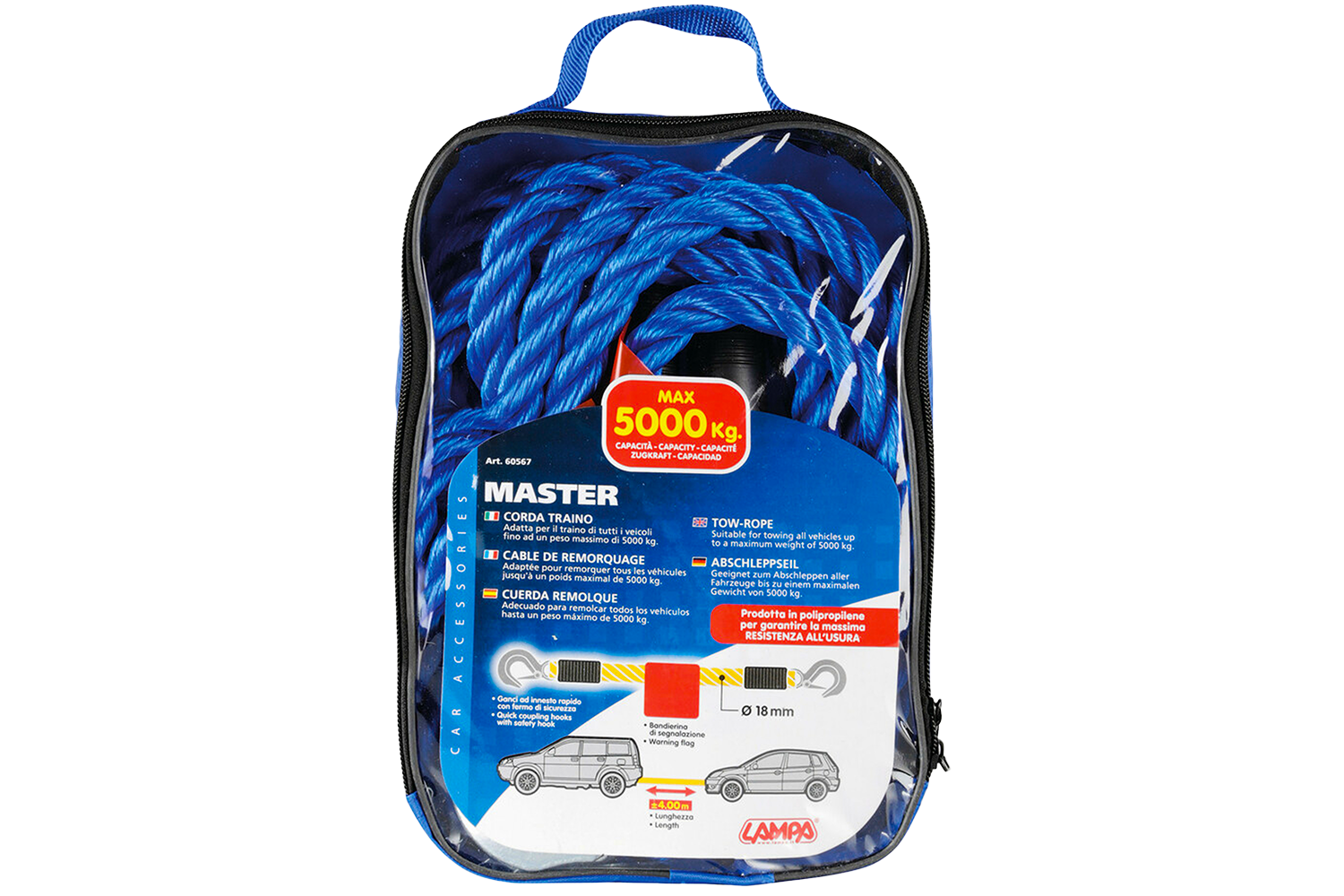 - Corde de remorquage bleu UNITRAILER avec crochets, résistance 5 t. Conçue pour le remorquage en toute sécurité des voitures particulières, camionnettes de livraison. Longueur 4 mètres assure une distance adéquate entre les véhicules lors du remorquage.