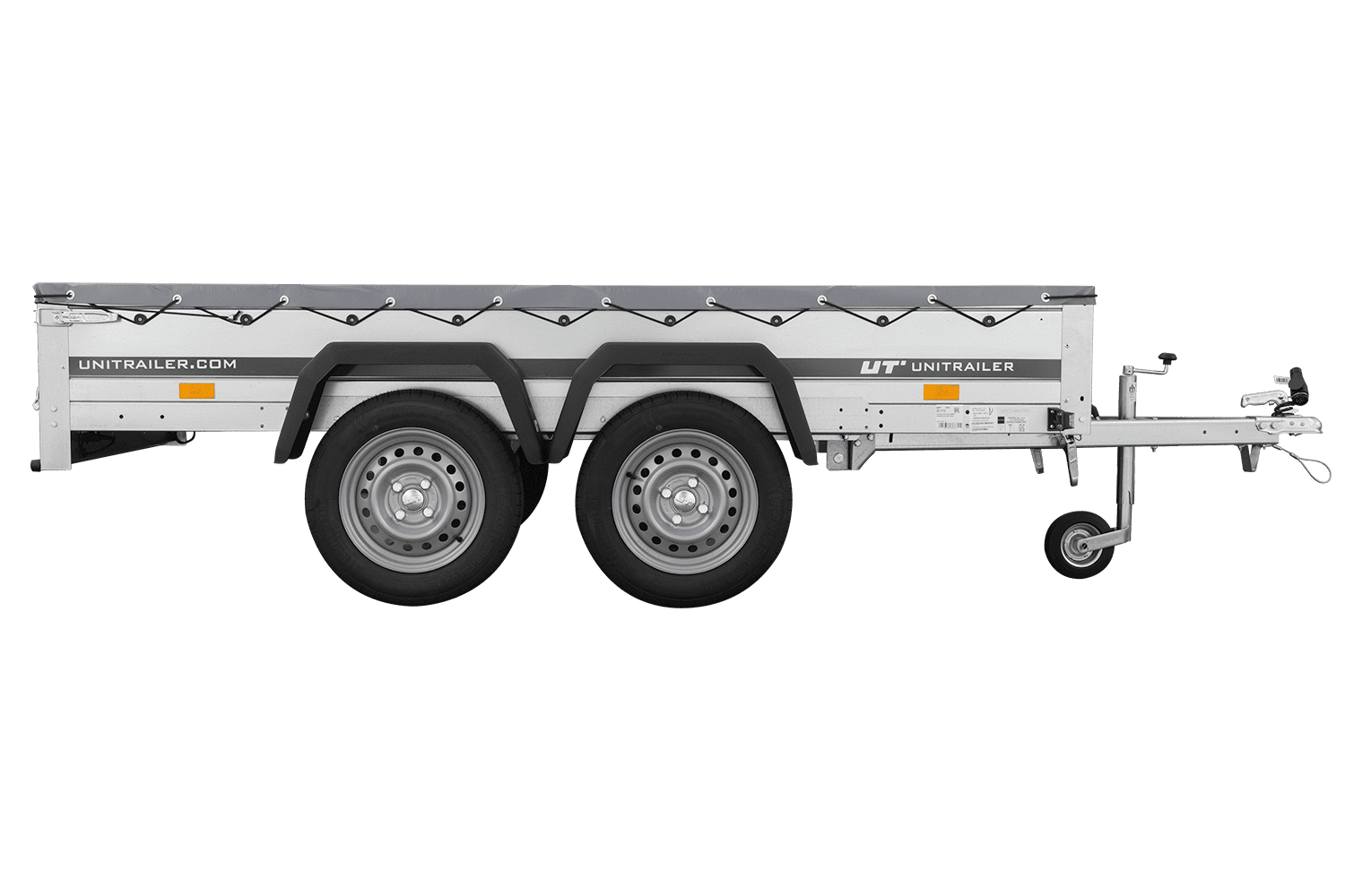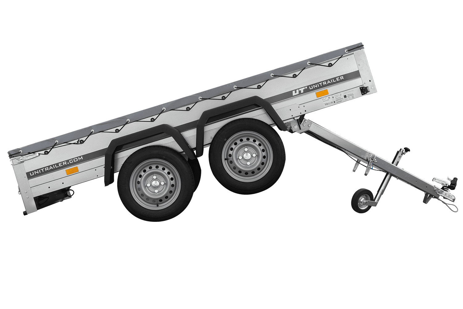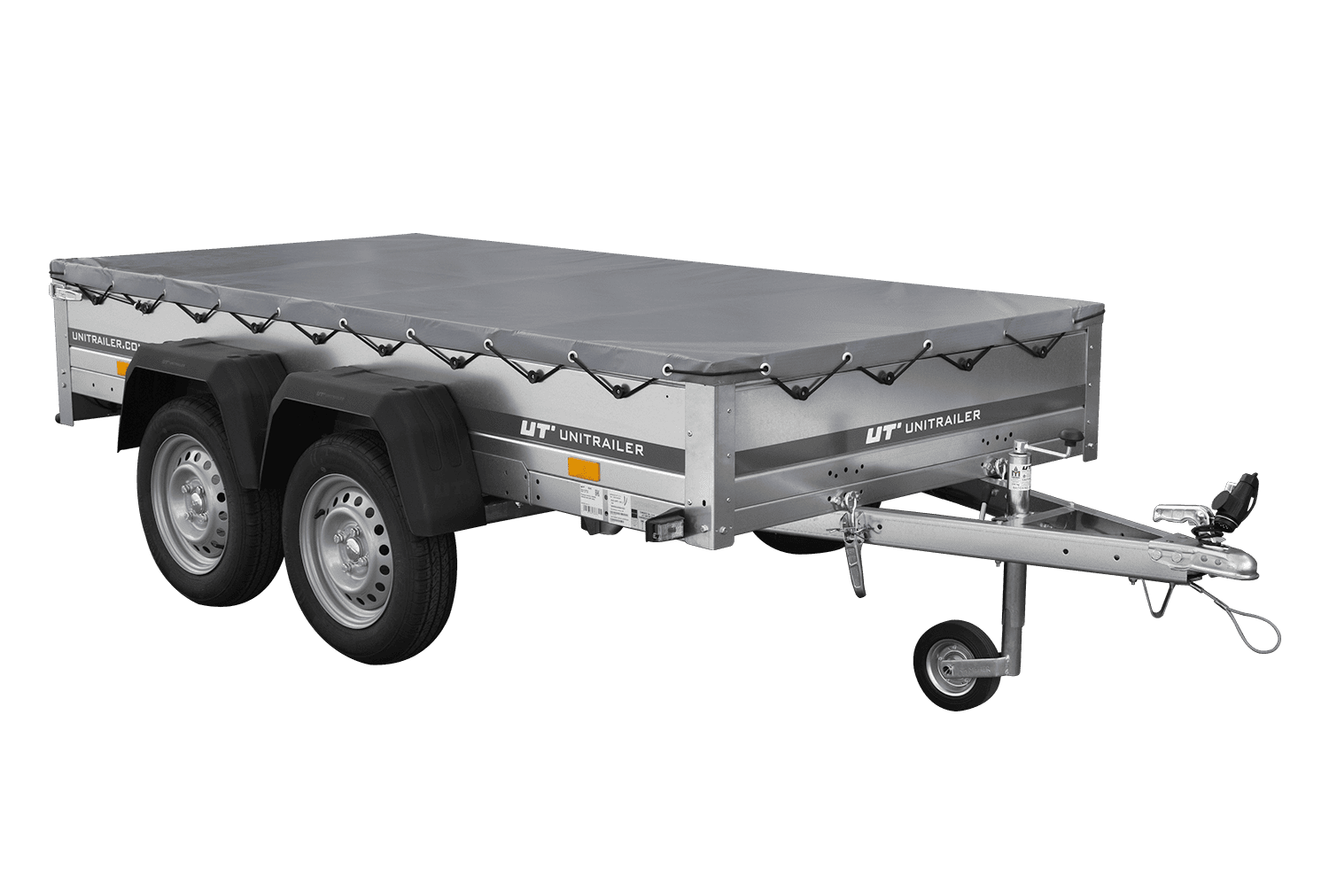 REMORQUE UNITRAILER 264/2 KIPP AVEC ROUE JOCKEY, TIGE DE SUPPORT DE BÂCHE ET BÂCHE PLATE GRISE