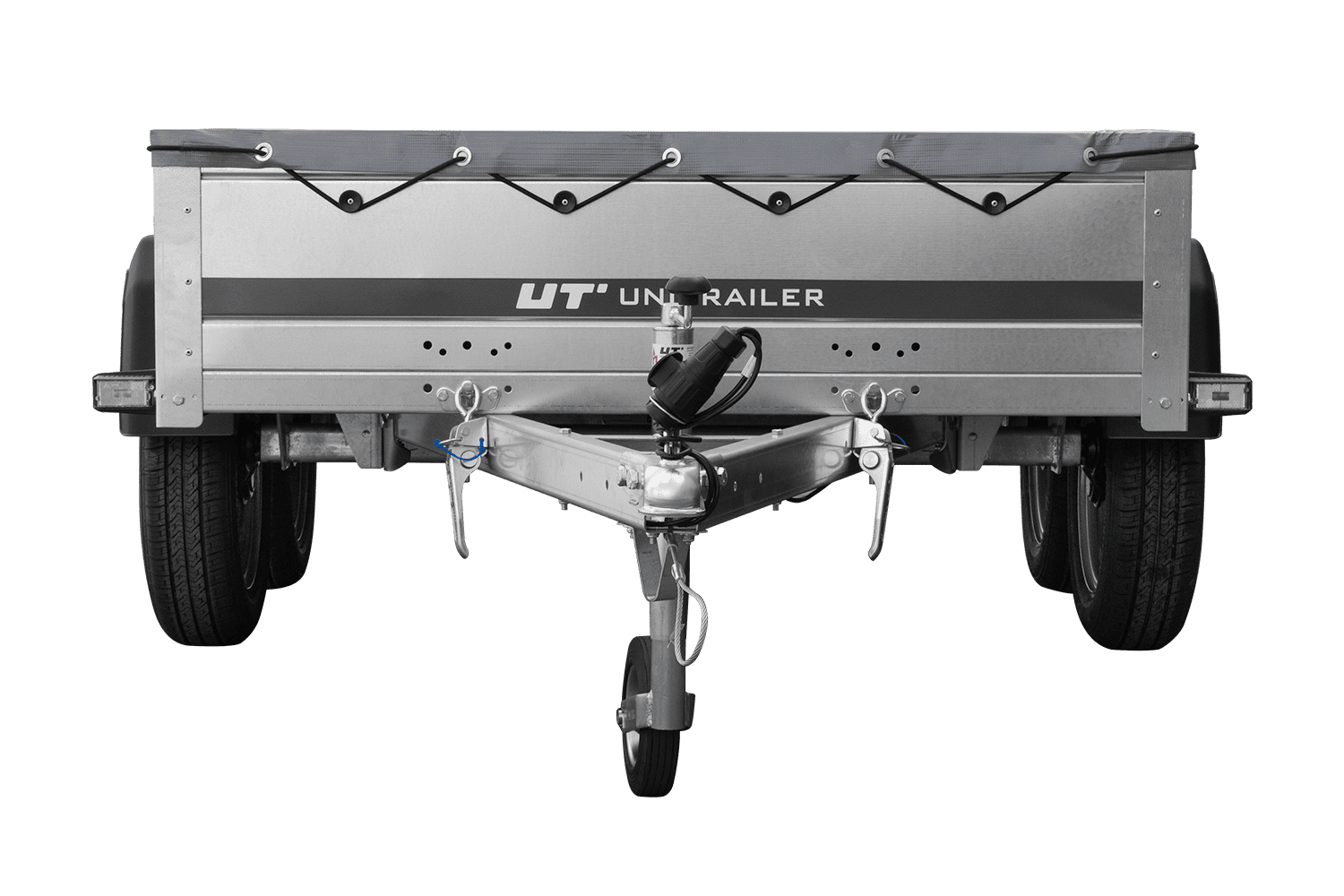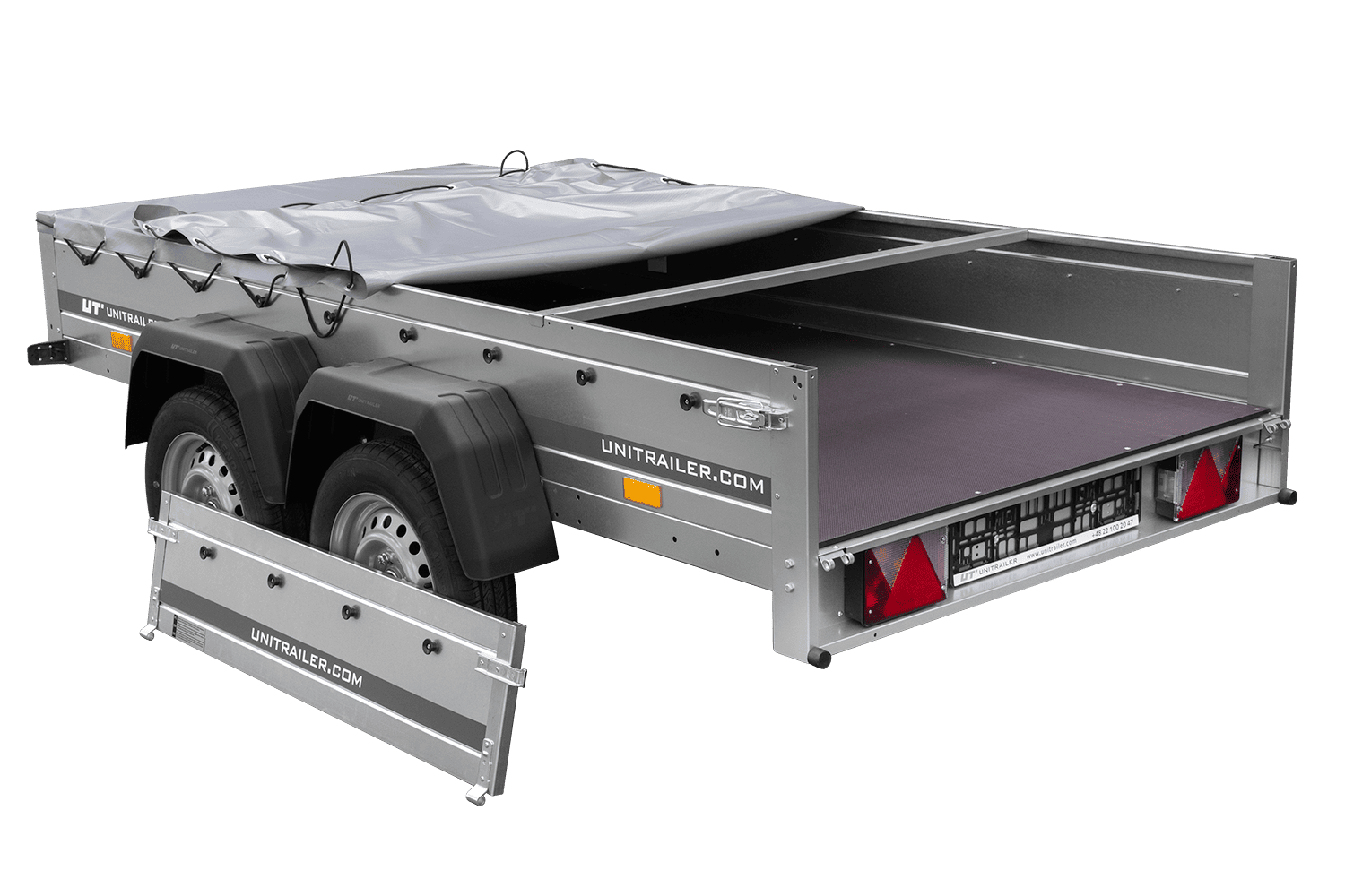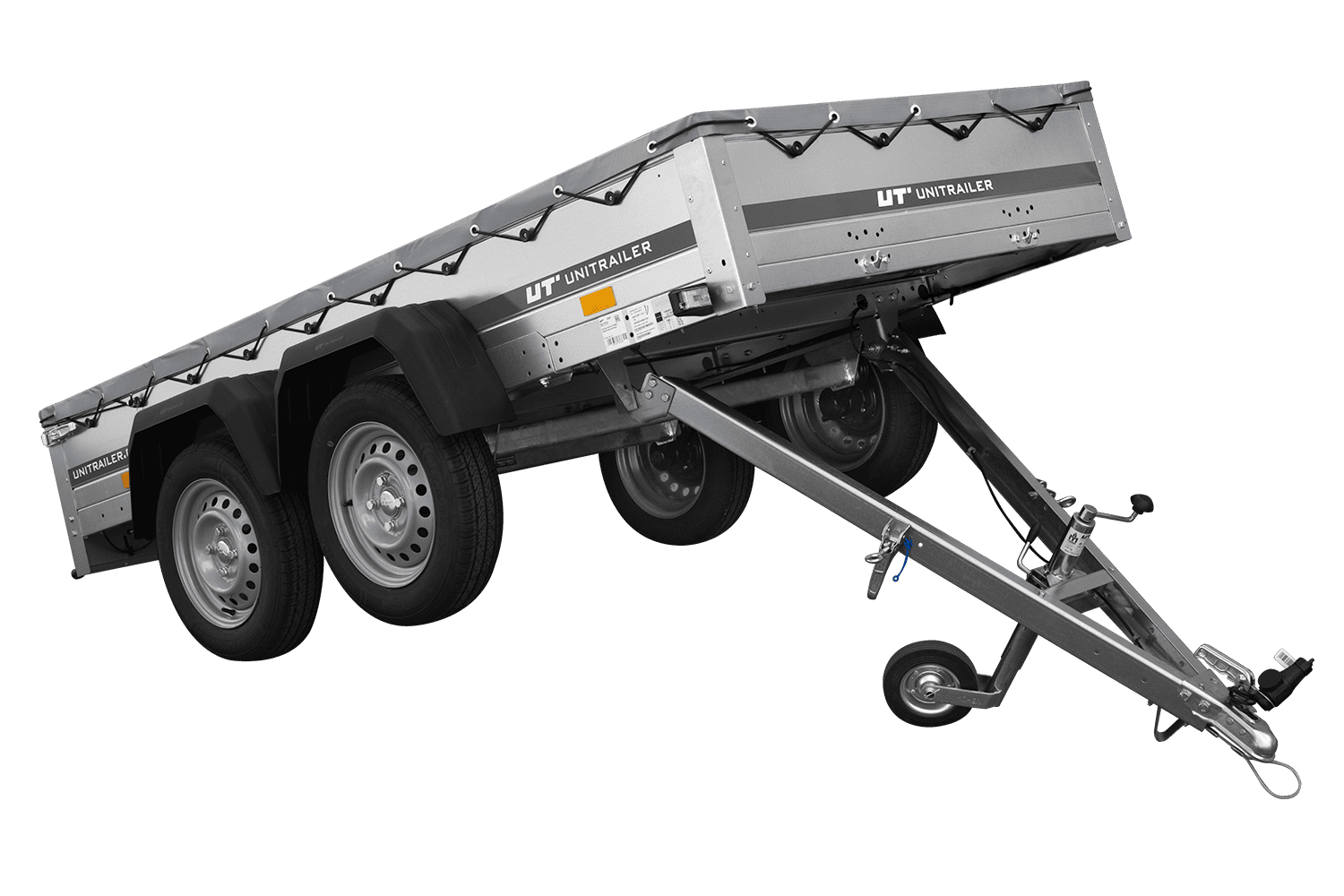 REMORQUE UNITRAILER 264/2 KIPP AVEC ROUE JOCKEY, TIGE DE SUPPORT DE BÂCHE ET BÂCHE PLATE GRISE