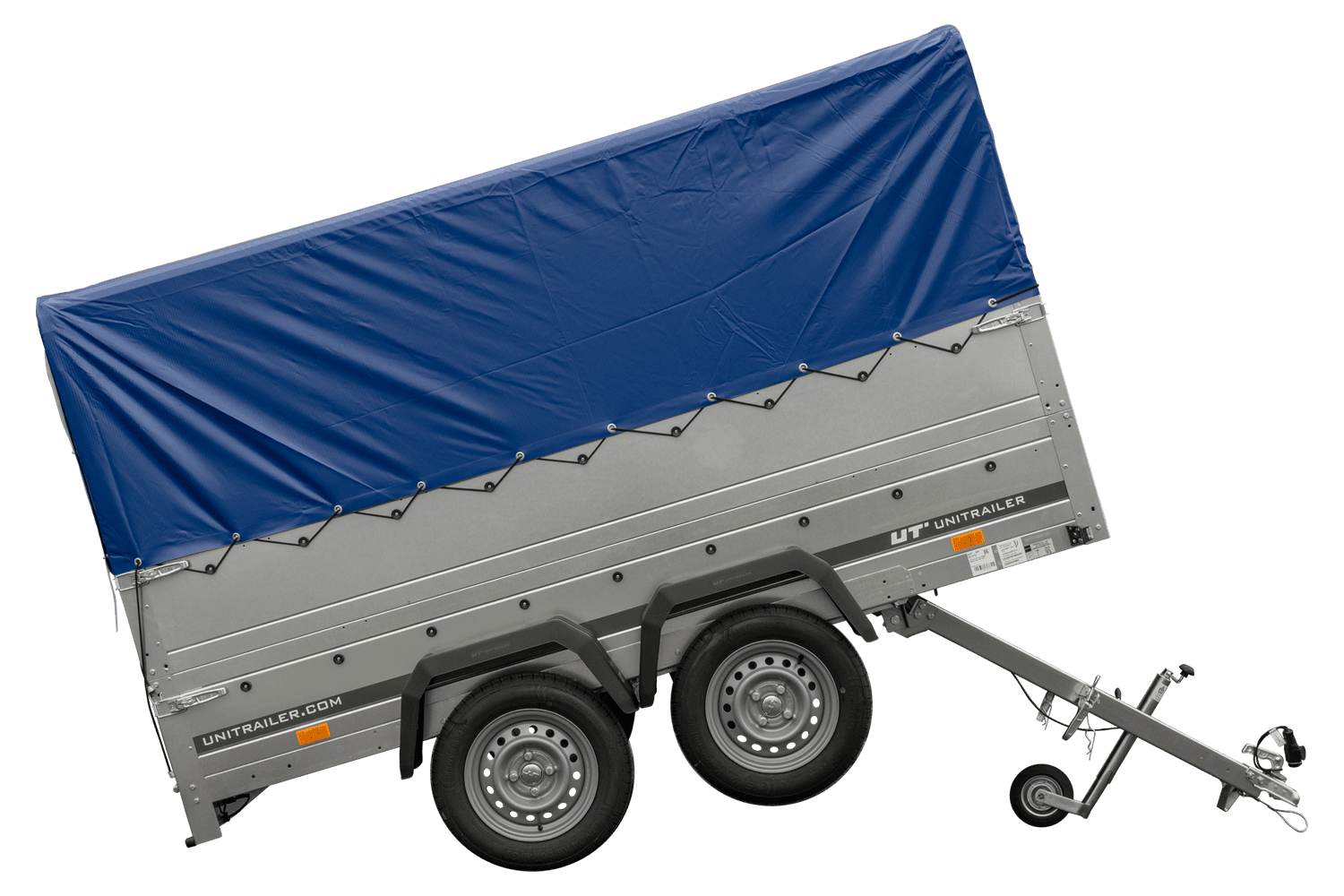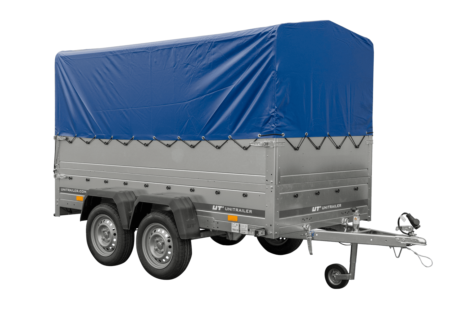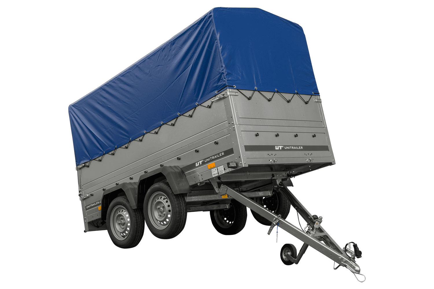 Remorque voiture à deux essieux UNITRAILER GARDEN TRAILER 264/2 KIPP avec rehausses de ridelles, bâche haute, arceau