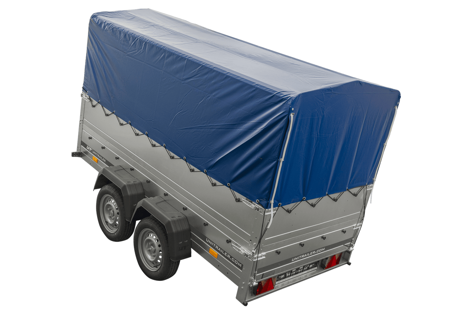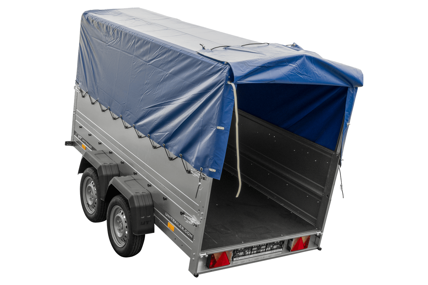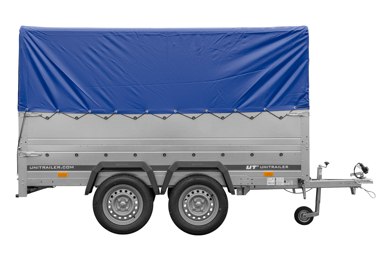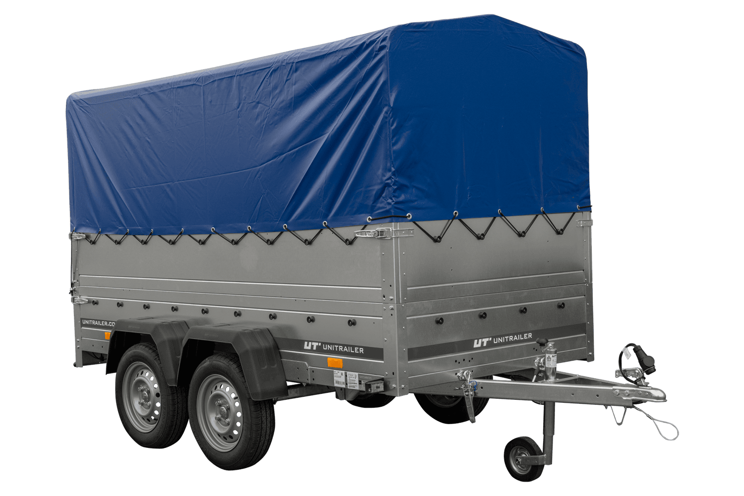 Remorque voiture à deux essieux UNITRAILER GARDEN TRAILER 264/2 KIPP avec rehausses de ridelles, bâche haute, arceau