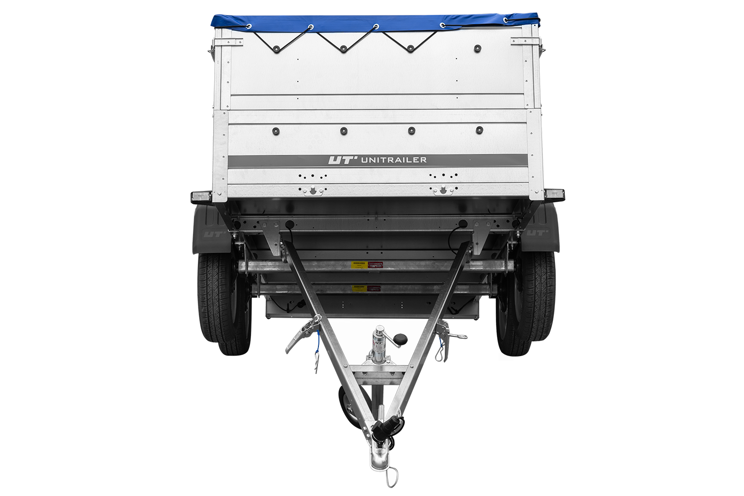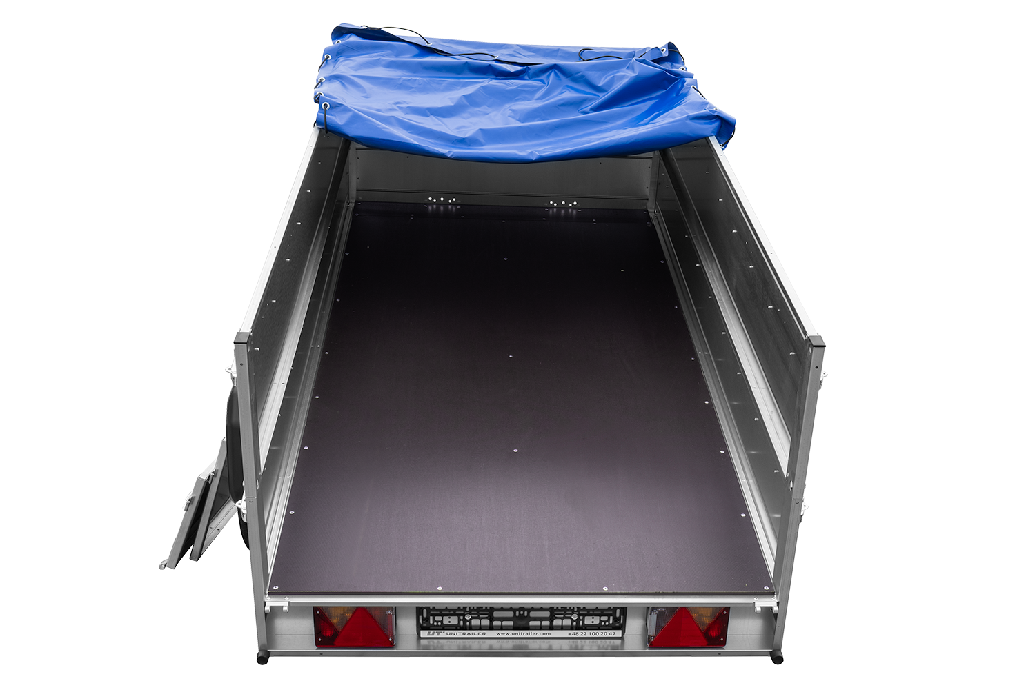 - Roues placées sur les côtés de la surface de transport résultant en un centre de gravité plus bas, une meilleure maniabilité et aucun rebond de la remorque même lors de la conduite sans chargement.