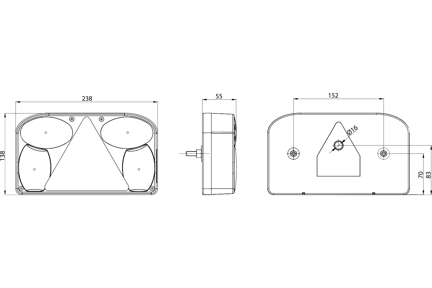 triangle réfléchissantLe feu a six fonctions : feu de position, qui assure la visibilité du véhicule lors de la conduite de nuit ; feu stop, signalisation de freinage ; clignotant, vous permettant d'indiquer votre intention de tourner ; feu antibrouillard, qui augmente la sécurité dans des conditions météorologiques difficiles, telles que le brouillard ou de fortes pluies ; éclairage de plaque d'immatriculation, qui assure la visibilité du numéro d'immatriculation du véhicule la nuit ; et un triangle réfléchissant qui augmente la visibilité du véhicule.