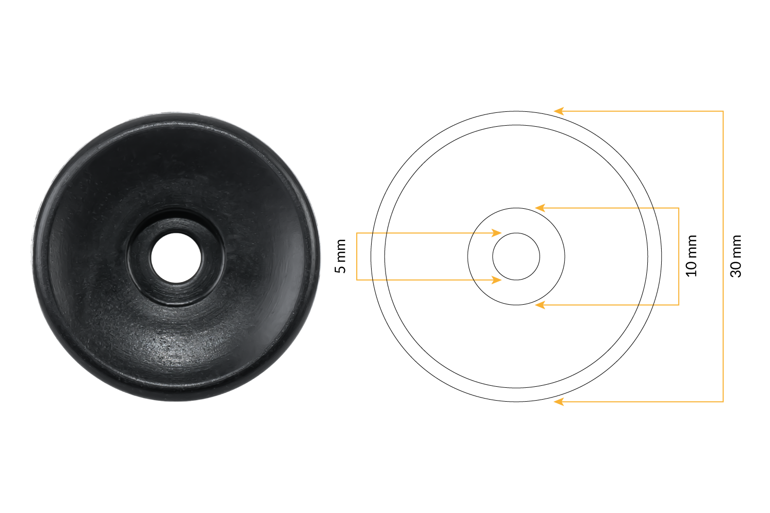 Rouleaux latéraux de TULPLAST pour remorques, chaque rouleau a un diamètre de 30 mm et une hauteur de 12 mm.