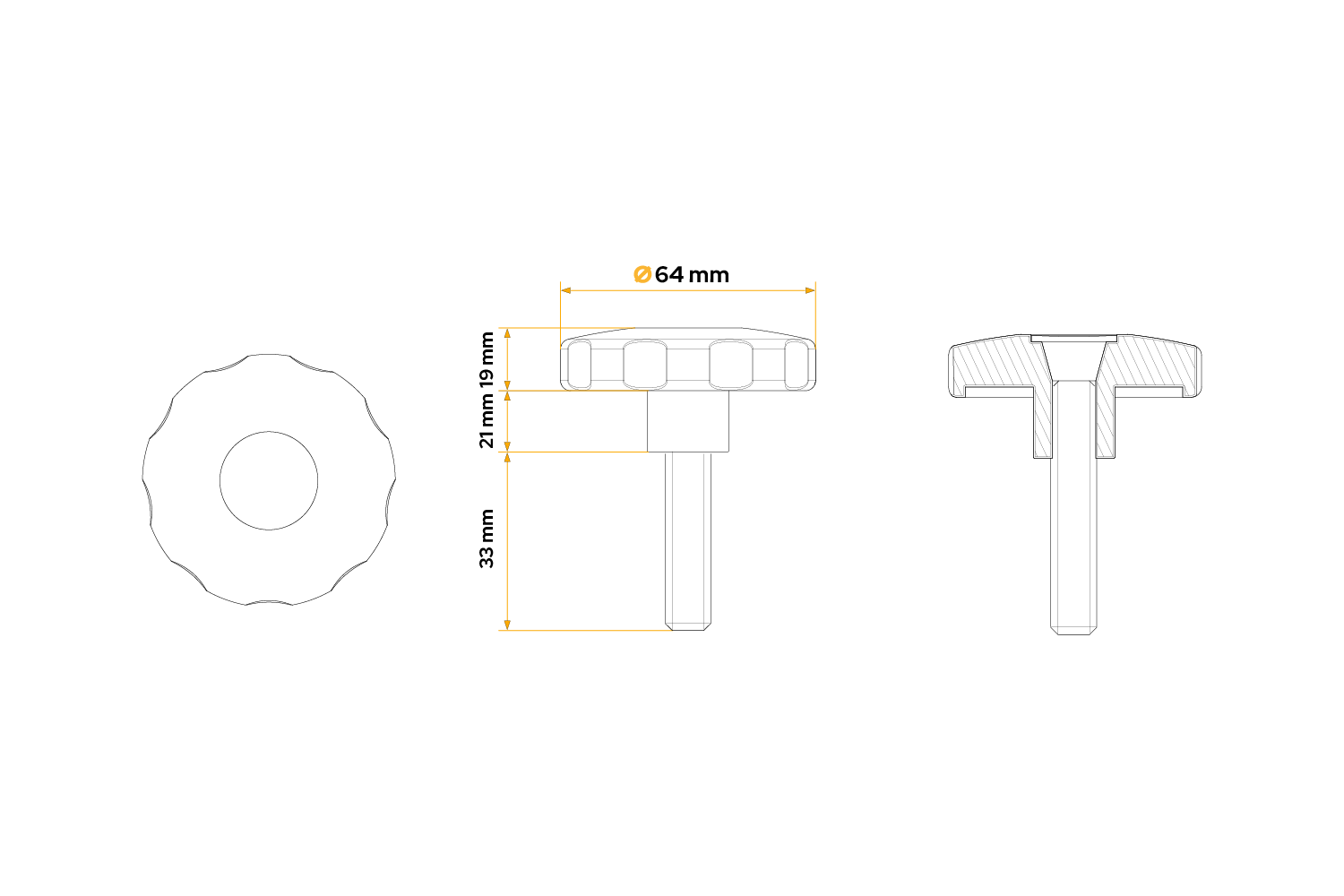 - Bouton étoile renforcé POK-03 M10×33, diamètre de 64 mm, permet une fixation rapide et sans outil des rampes. Il est équipé d'une vis M10 moulée avec un filetage de 33 mm. Résiste aux chocs, aux intempéries, aux huiles, aux carburants et aux graisses.