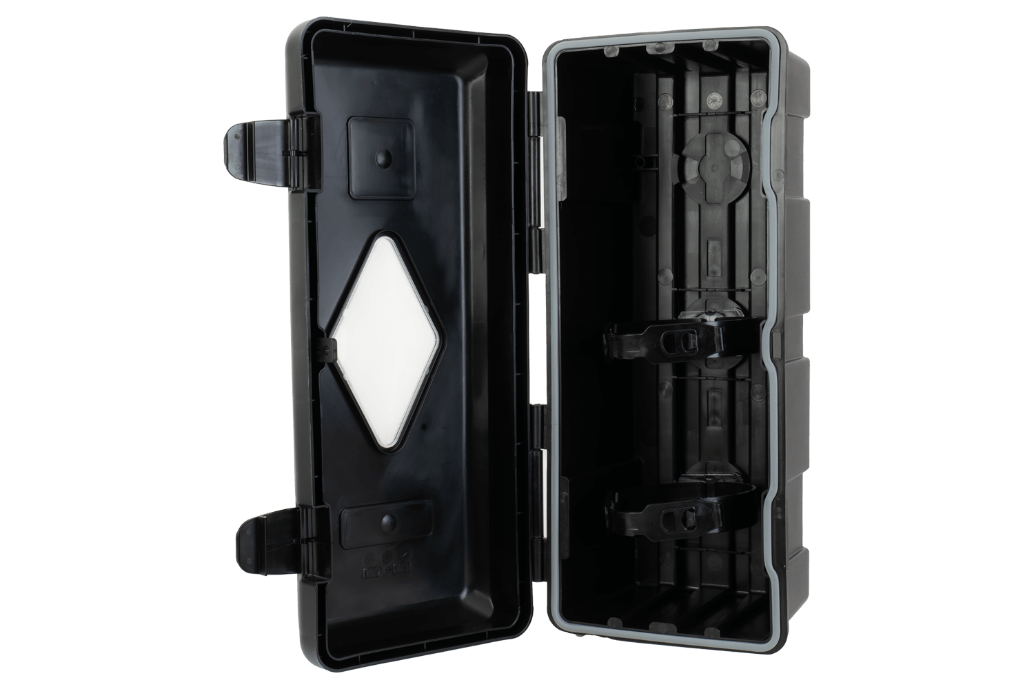 Le coffre pour extincteur est fabriqué en polypropylène, nylon et polycarbonate de haute qualité, garantissant une durabilité et une résistance exceptionnelles aux dommages mécaniques. Ces matériaux offrent une excellente protection contre le feu, l'eau, la poussière, le carburant, les rayons UV et les températures extrêmes, ce qui le rend idéal pour les conditions d'utilisation difficiles. Sa construction robuste protège le contenu des influences extérieures nocives, et la fenêtre d'inspection permet de vérifier rapidement l'état de l'extincteur, garantissant confort et sécurité d'utilisation.