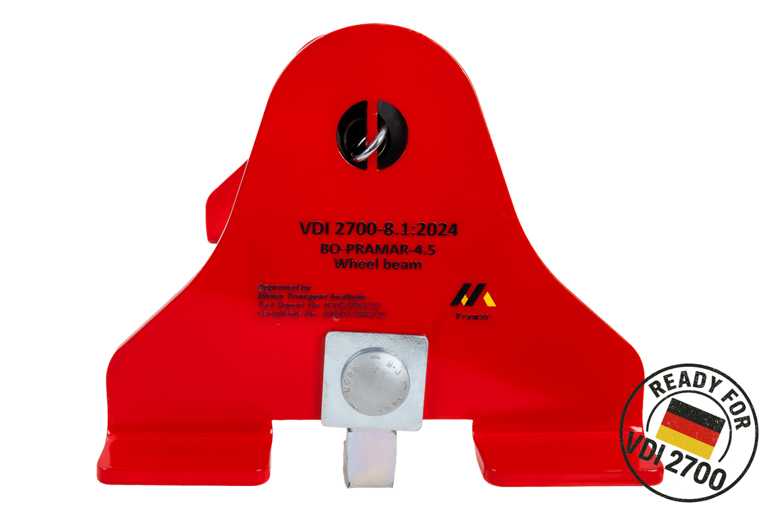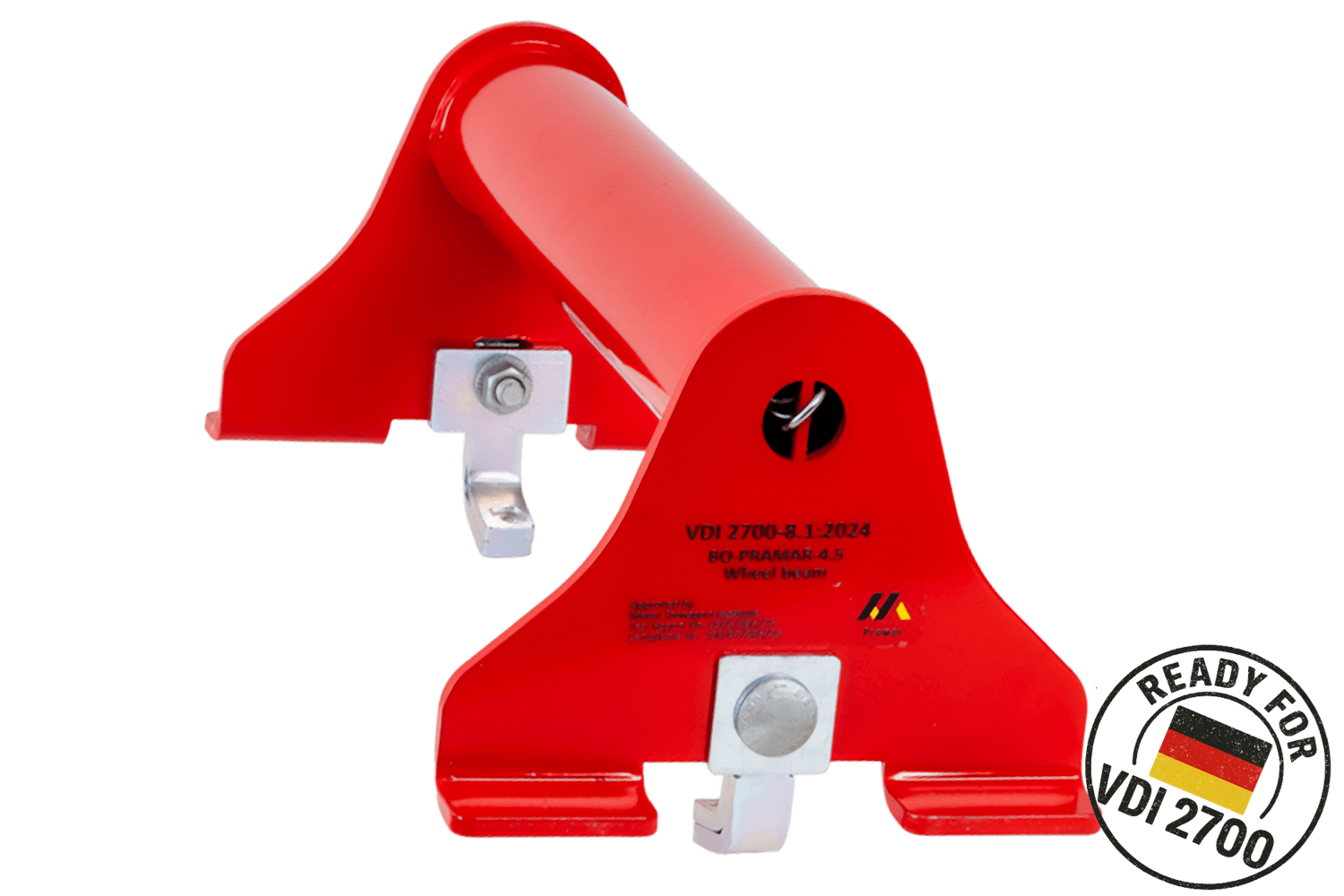 Le bloqueur PRAMAR Radstopper est certifié selon la norme VDI 2700 pour la sécurisation des véhicules jusqu'à 4,5 T, ce qui confirme sa sécurité et sa qualité de fabrication conformément aux normes européennes de sécurisation des charges. La norme VDI 2700 fournit des lignes directrices pour la fixation correcte des véhicules sur les plates-formes de transport, et le respect de ses exigences signifie que le produit a été testé pour sa résistance, sa stabilité et sa fonctionnalité dans des conditions d'utilisation sur route. Cela donne à l'utilisateur l'assurance que le casier répond aux exigences strictes en matière de protection des véhicules transportés, tant dans les applications commerciales que individuelles.