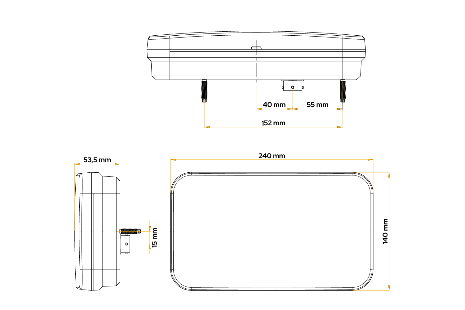 Le feu arrière LED CANBUS FT-370 de FRISTOM, conçu pour être monté sur le côté droit du véhicule, a les dimensions suivantes : largeur 240 mm, hauteur 140 mm, profondeur 53,5 mm. Conçu pour fonctionner dans une plage de tension de 12 V, il peut être utilisé dans les remorques légères, les bus et les remorques, ce qui souligne son universalité. Equipé d'un connecteur à baïonnette 6 broches, il permet une installation facile et rapide. Grâce à l'utilisation de la technologie LED, la lampe offre des performances élevées, une durabilité et une efficacité énergétique, garantissant la sécurité dans diverses conditions routières. La construction de la lampe est hermétique, résistante aux chocs et aux dommages mécaniques, et dispose également d'une protection électrique contre l'inversion de polarité, ce qui augmente encore sa fiabilité dans des conditions de fonctionnement difficiles.