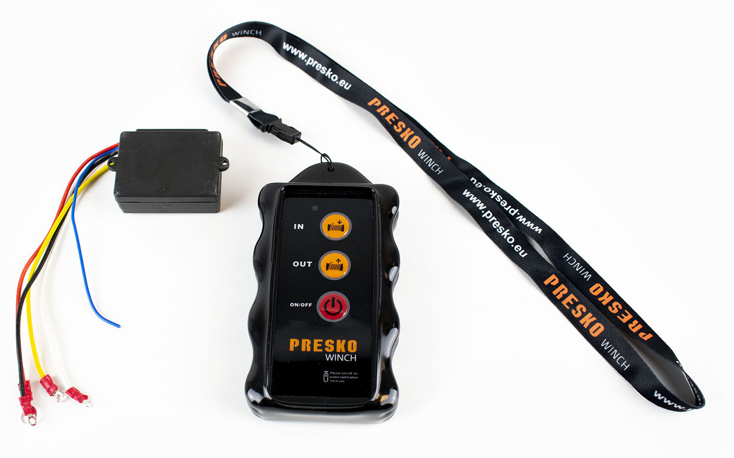 - La télécommande sans fil universelle PRESKO pour treuils 12 V et 24 V est compatible avec la plupart des modèles du marché. Elle offre une portée sans fil jusqu'à 15 m et une utilisation simple et intuitive, permettant une commande à distance pratique et