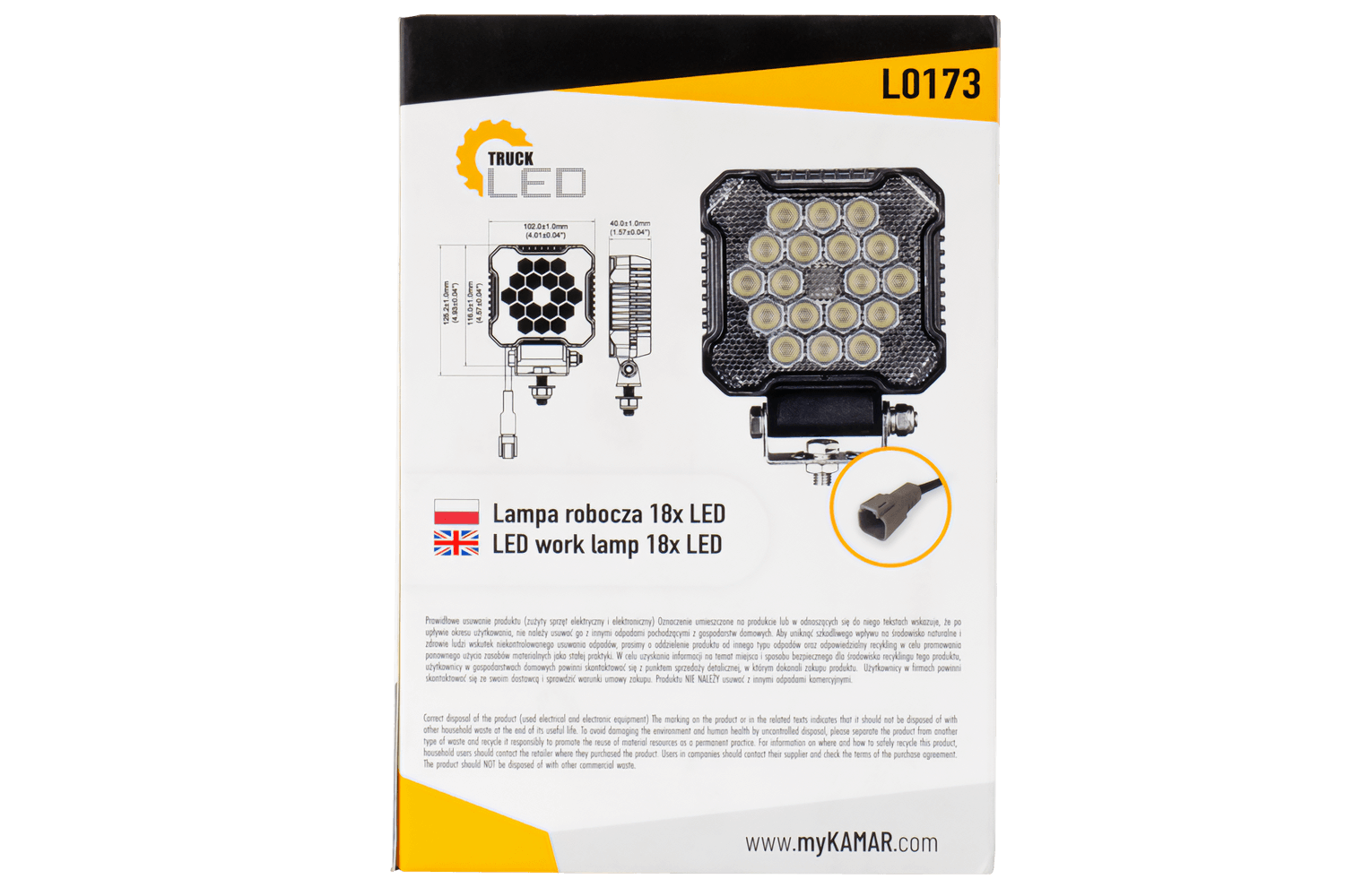 Phare de travail LED TruckLED L0173 18xLED 2800lm connecteur DT