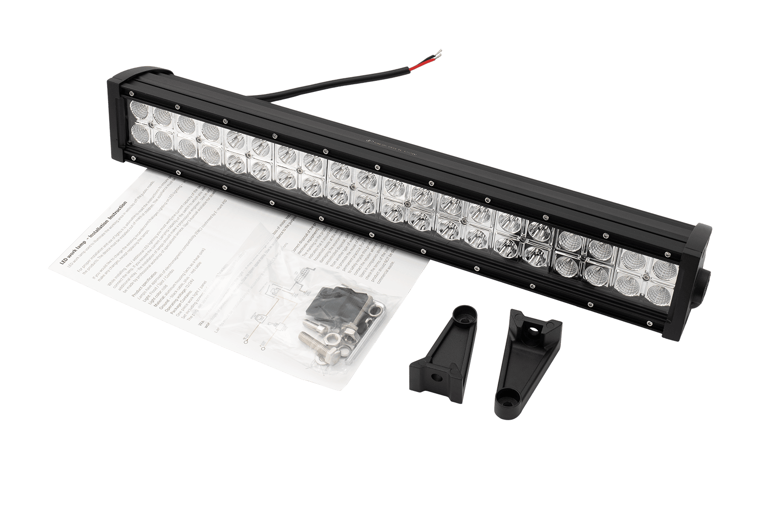 La lampe de travail LB0004 de TruckLED est une source lumineuse LED universelle conçue pour travailler dans des conditions difficiles. Elle est parfaite pour les véhicules utilitaires, les machines agricoles, de construction et tout-terrain, ainsi que sur les bateaux ou comme éclairage supplémentaire pour les bus et les camions. Elle se caractérise par une construction solide avec des dimensions : largeur 597 mm, hauteur 122 mm, profondeur 88 mm, ainsi qu'une alimentation dans la plage de tension de 12-24 V. Grâce au câble de 0,25 m de long, une installation et une connexion faciles sont possibles même dans les endroits difficiles d'accès. Le boîtier de la lampe est fabriqué à partir de matériaux durables, ce qui garantit une résistance aux chocs et aux dommages mécaniques dans des conditions de travail exigeantes.