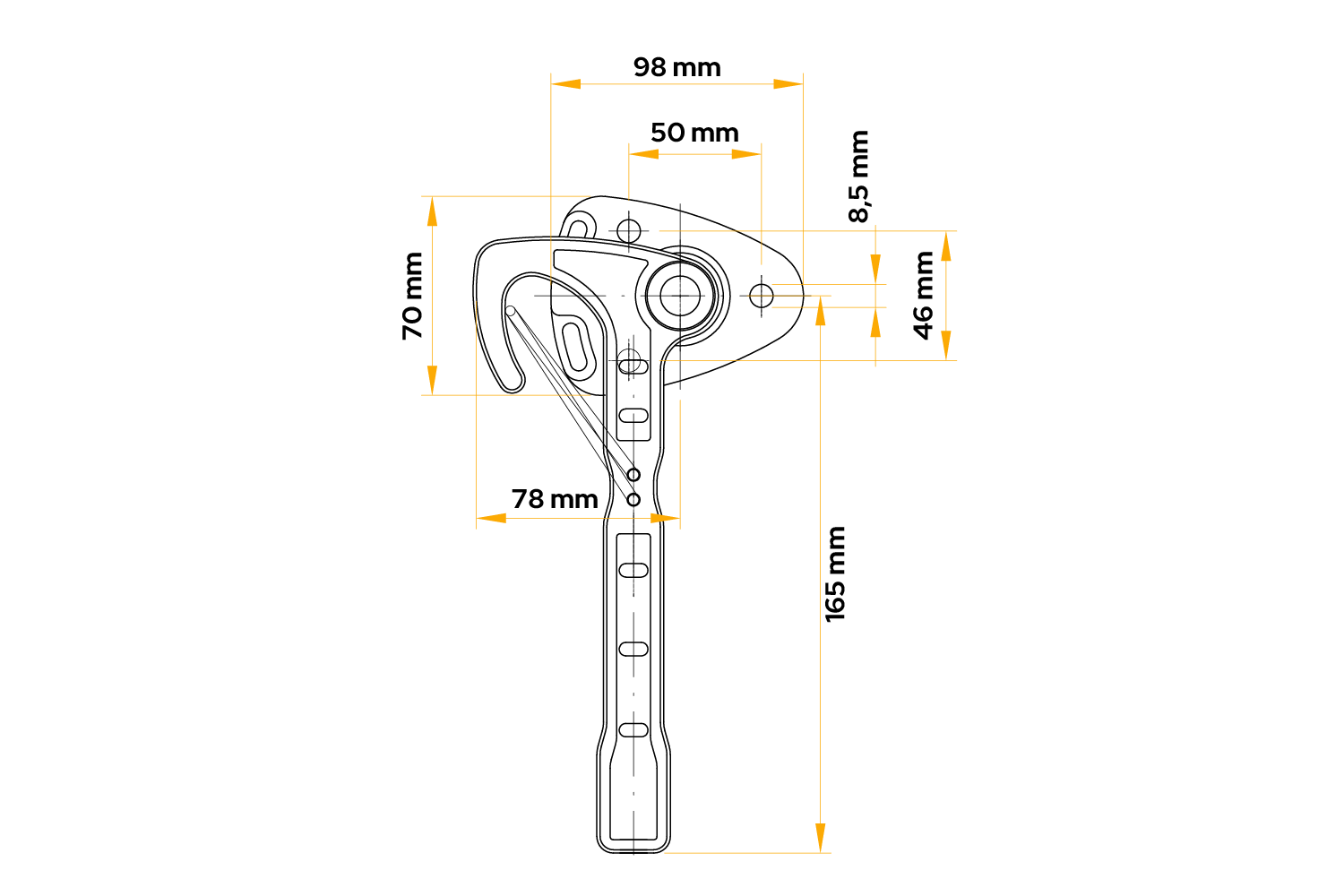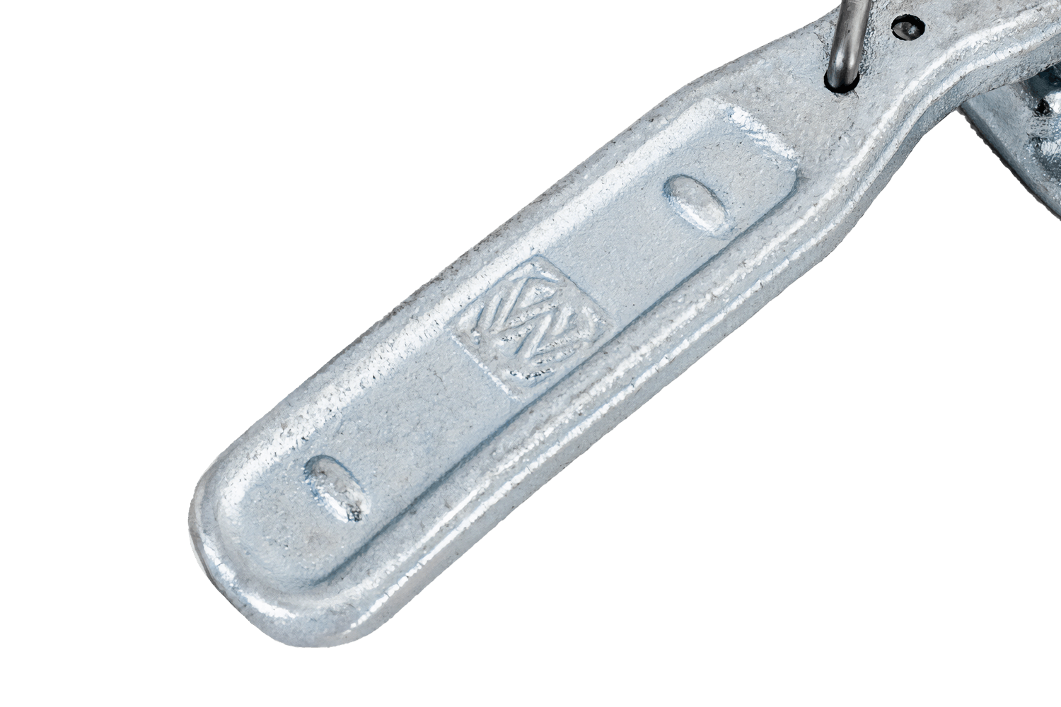Le crochet latéral est fabriqué en fonte galvanisée de haute qualité, offrant une grande rigidité et une grande résistance aux dommages mécaniques. Le revêtement en zinc protège efficacement l'élément contre la corrosion et les effets néfastes des facteurs externes tels que l'humidité, le sel de déneigement et les conditions climatiques changeantes. Cela garantit une longue durée de vie et une fiabilité optimale au quotidien.