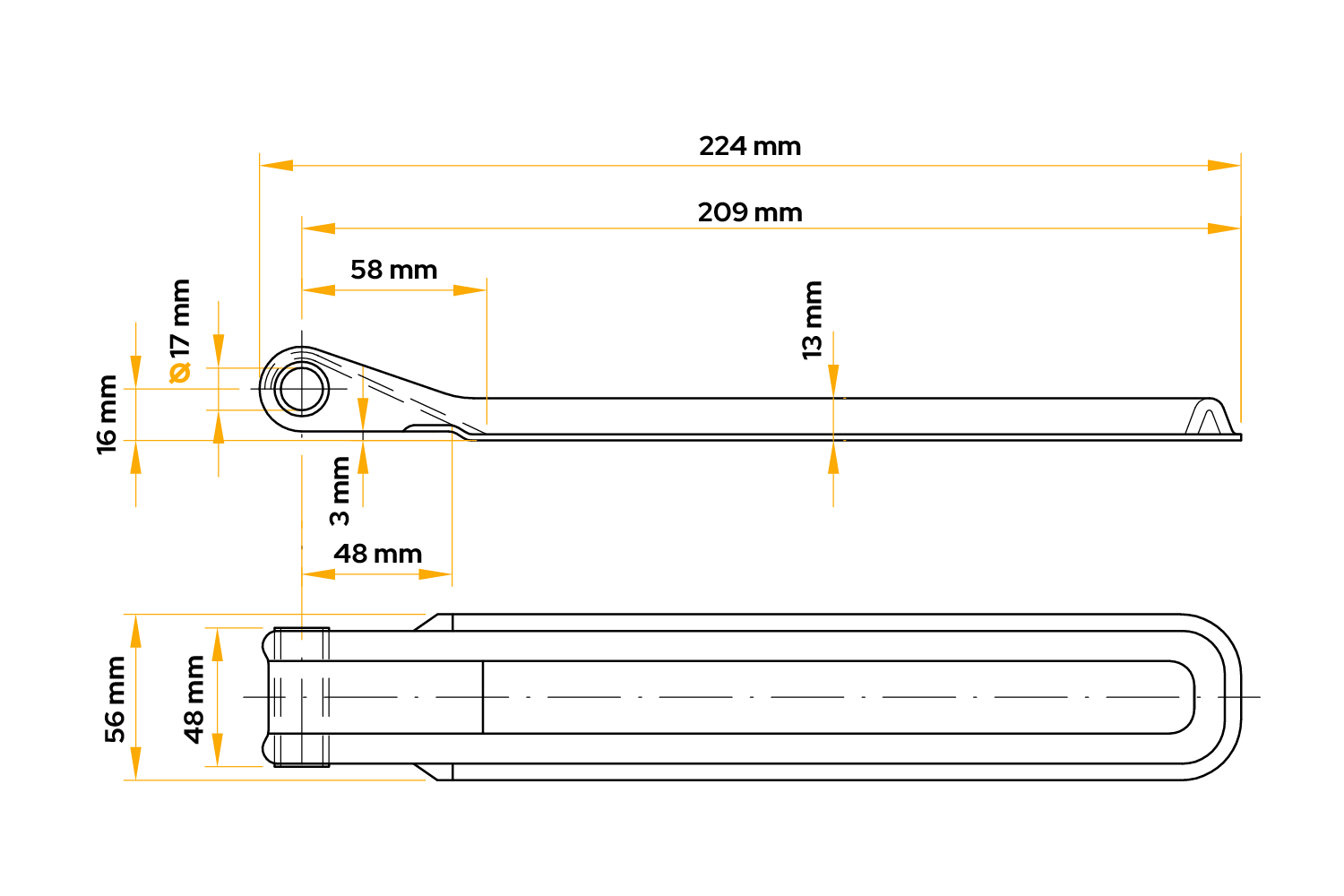 La charnière de remorque BSCH 10-17-220 de WINTERHOFF est un composant robuste et durable conçu pour le montage des ridelles sur les remorques utilitaires, agricoles et de transport. D'une longueur de 224 mm et d'une largeur de 56 mm, elle est polyvalente et s'adapte facilement à différents types de remorques. Sa finition soignée garantit un fonctionnement stable et facilite l'ouverture et la fermeture des ridelles, améliorant ainsi la fonctionnalité de l'ensemble de la structure.