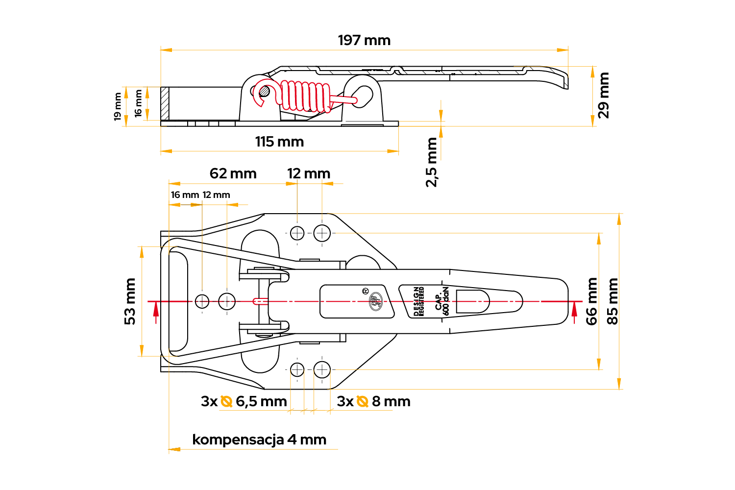 L'attelage latéral STEELPRESS ZB-04 est un composant robuste conçu pour fixer solidement et durablement les côtés, ridelles des remorques de transport, agricoles et utilitaires. D'une longueur de 197 mm, il peut supporter jusqu'à 600 kg, garantissant ainsi sa durabilité même en utilisation intensive. Sa conception permet un déport jusqu'à 4 mm, permettant ainsi un ajustement flexible aux différentes configurations de ridelles, garantissant une fermeture stable et éliminant le risque d'ouverture spontanée pendant la conduite.